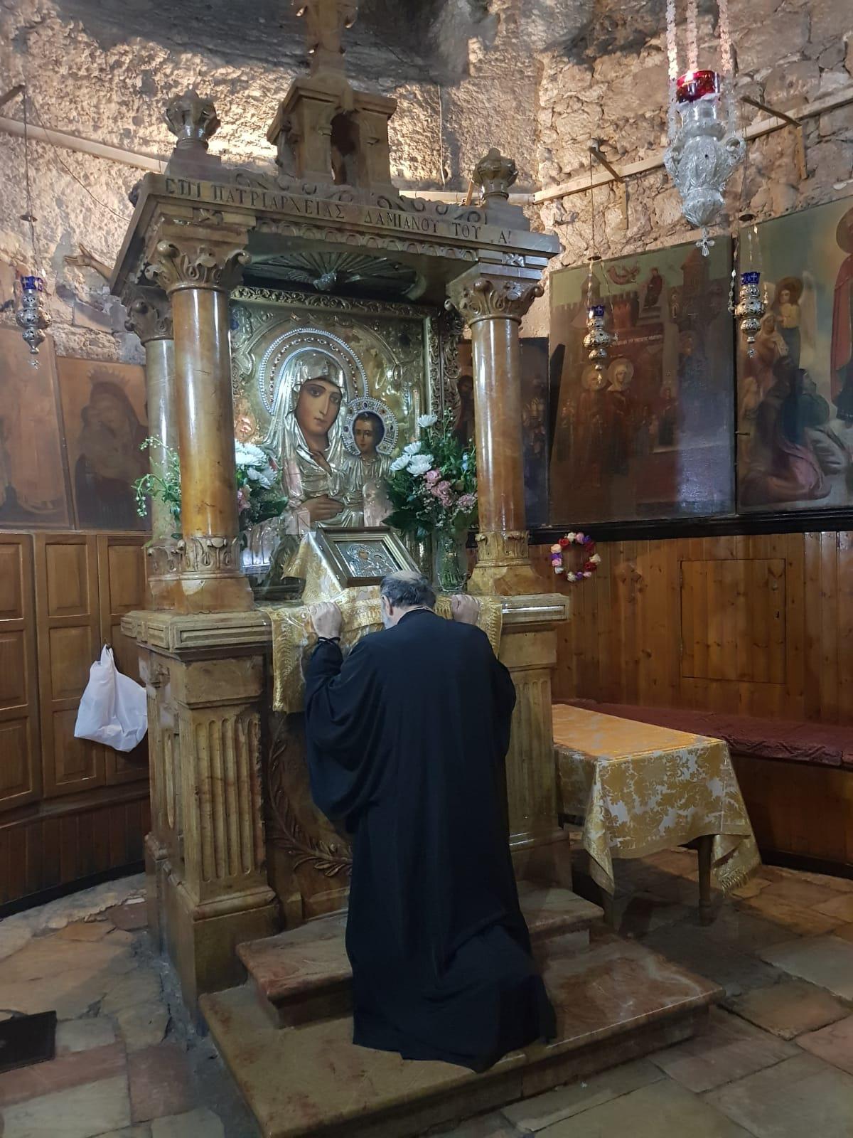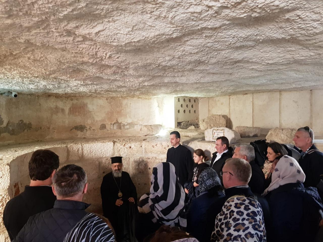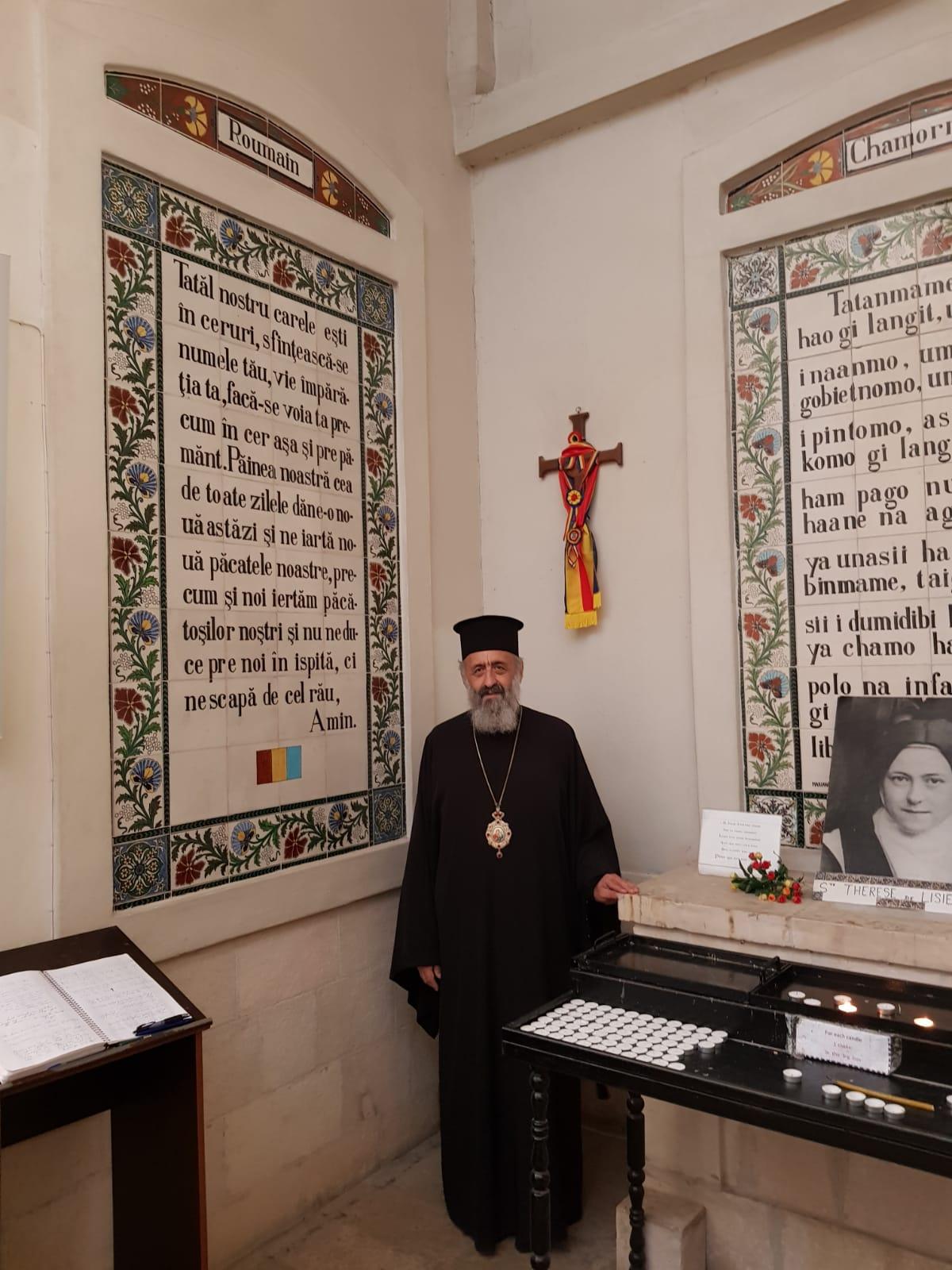 Coborând de pe Muntele Eleonului, grupul de pelerini s-a oprit la peștera unde Mântuitorul Iisus Hristos a rostit, la cererea Sfinților Apostoli, Rugăciunea Domnească și Cuvântarea eshatologică. Intrând în biserica aflată aici, credincioșii au admirat cu bucurie panoul panoramic pe care se regăseau textele rugăciunii în limba română, care prima în fața celorlalte texte afișate în diferite limbi. În continuare, Ierarhul nostru, înconjurat de grupul de clerici și credincioși din Eparhia Alba Iuliei, s-a oprit la locul unde Domnul a plâns în momentul în care a privit degradarea Ierusalimului și a poporului și unde a proorocit distrugerea Cetății. Apoi, credincioșii pelerini au admirat mozaicul reprezentând cloșca cu pui, precum și un mozaic regăsit la prima biserică creștină edificată pe acest loc.