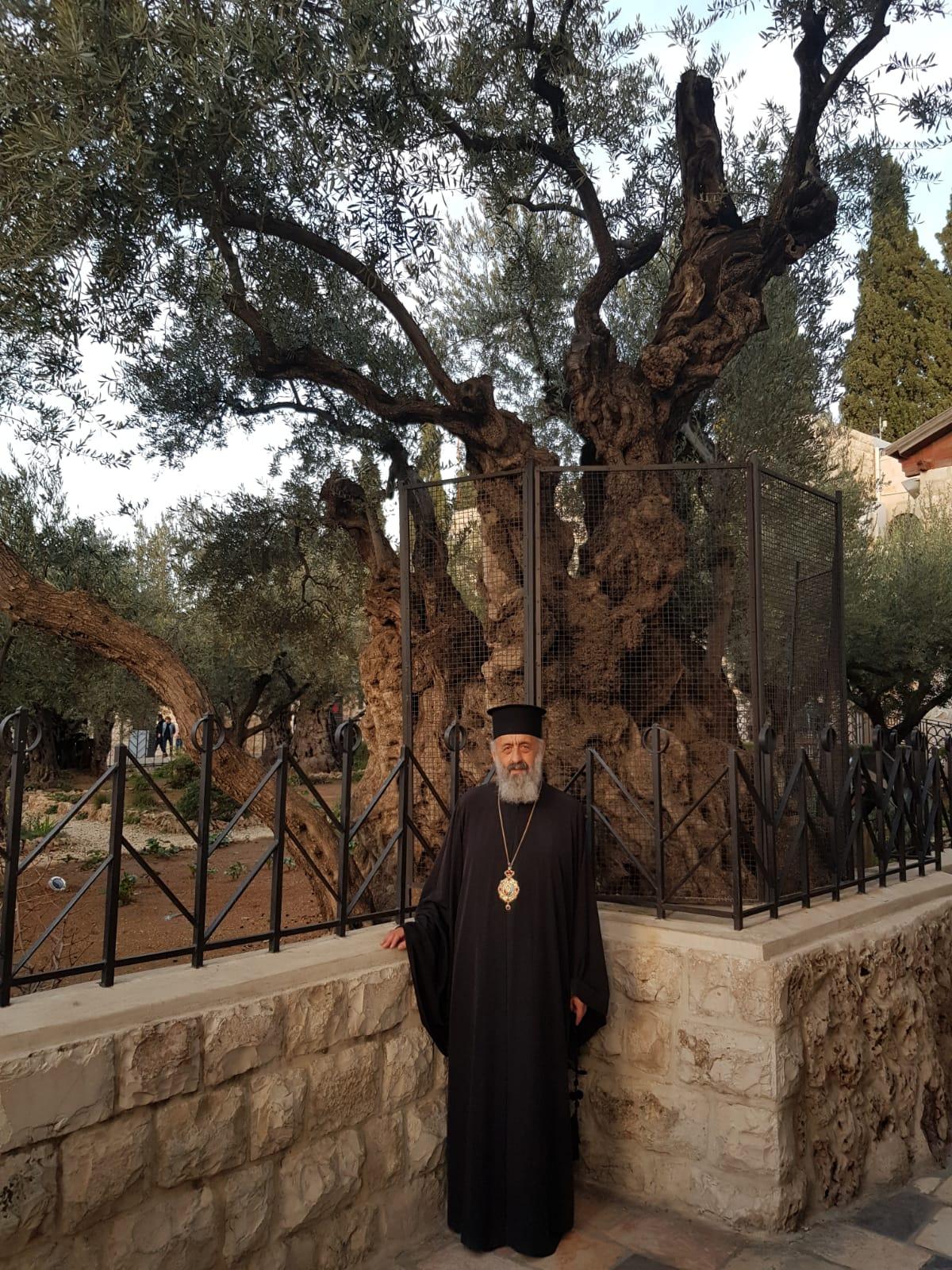 Tot în această zi, credincioșii pelerini au poposit în Grădina cu măslini (Ghetsimani), situată la poalele Muntele Eleonului, în care este comemorată agonia Mântuitorului Hristos din timpul Sfintelor Sale Pătimiri. Aici, grupul de clerici și credincioși a putut săruta piatra care a fost stropită cu sângele amestecat cu sudoarea Domnului Hristos, admirând, totodată, doi dintre cei mai vechi măslini din Grădina Ghetsimani, aceștia fiind, probabil, contemporani ai luptei lui Iisus cu moartea.