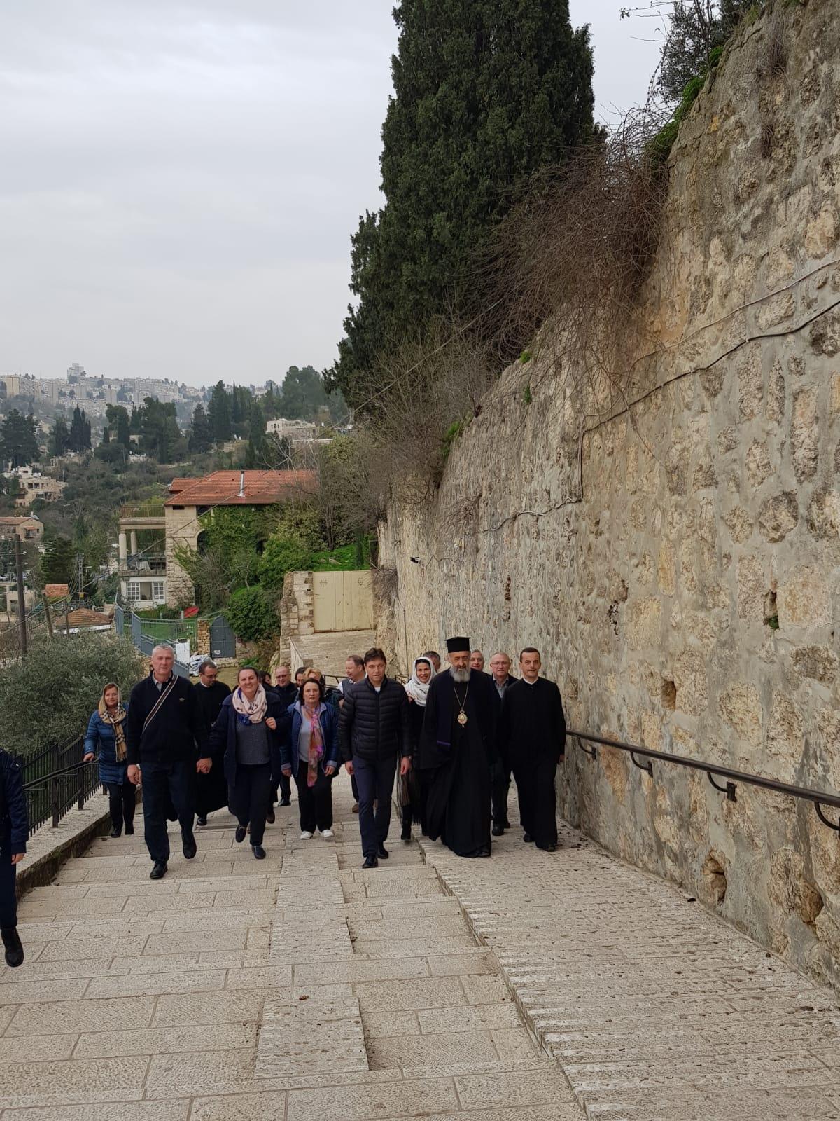 În ultima parte a zilei, Părintele Arhiepiscop Irineu, însoțit de grupul de credincioși, a poposit la Biserica Vizitării, denumită astfel după ce Maica Domnului s-a aflat în vizită, aici, timp de trei luni, la Sfinții Zaharia și Elisabeta. Aflați în acest loc, pelerinii au meditat la întâlnirea dintre Elisabeta, soția preotului Zaharia, și Fecioara din Nazaret, moment descris de către Sfântul Luca în Evanghelia sa. În urma cuvintelor deosebite adresate Maicii Domnului de către Elisabeta, Fecioara cea neprihănită a răspuns prin acele memorabile cuvinte: „Magnificat anima mea Dominum” („Mărește sufletul meu pe Domnul”). Reliefând calitatea de mijlocitoare a Preasfintei Născătoare de Dumnezeu, Părintele Arhiepiscop Irineu a subliniat faptul că, din conținutul acestor cuvinte, reiese limpede că Maica Domnului, strănepoata Regelui David, este demnă de a primi preacinstirea creștinilor, după cum însăși ea și-a prevestit cultul de supravenerare atunci când a spus: „Iată, de acum mă vor ferici toate neamurile” (Lc. 1, 48).