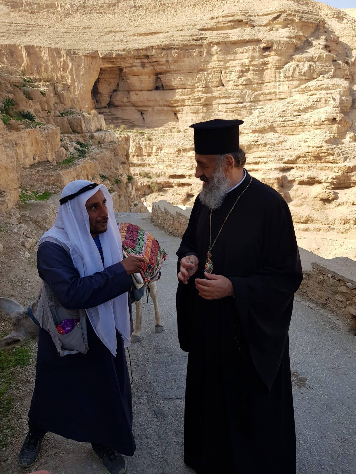 Poposind în această cetate străveche, putem să ne amintim și de alte lucruri minunate pe care Iisus le-a făcut în drumul Său din Galileea la Ierusalim, printre care amintim vindecarea orbului din naștere, pe nume Bartimeu. De aici, au plecat spre Așezământul românesc din Ierihon, construit între anii 1999-2006, care alături de Așezământul românesc de le Ierusalim și de Așezământul romanesc de la Iordan, construite în perioada interbelică, reprezintă o mândrie pentru poporul român și pentru Biserica noastră străbună. În acest an în care aniversăm Centenarul Marii Uniri, se cuvine să aducem omagiul recunoștinței noastre celor care au contribuit la edificarea acestor trei așezăminte românești de la Locurile Sfinte, prin aceasta ei multiplicând zestrea noastră spirituală și materială. Următorul obiectiv a fost locul de unde credincioșii noștri au avut o superbă imagine a Muntelui Carantaniei, al cărui vârf de piatră cenușie se înalță spre cerul albastru. Aici, Iisus Domnul a postit 40 de zile, rezistând ispitei diavolului, dându-ne prin aceasta îndemn să învingem pofta trupului, pofta ochilor și trufia vieții (cf. 1 Ioan 2, 16), respectiv cele trei păcate de căpetenie: desfrânarea, lăcomia și mândria.