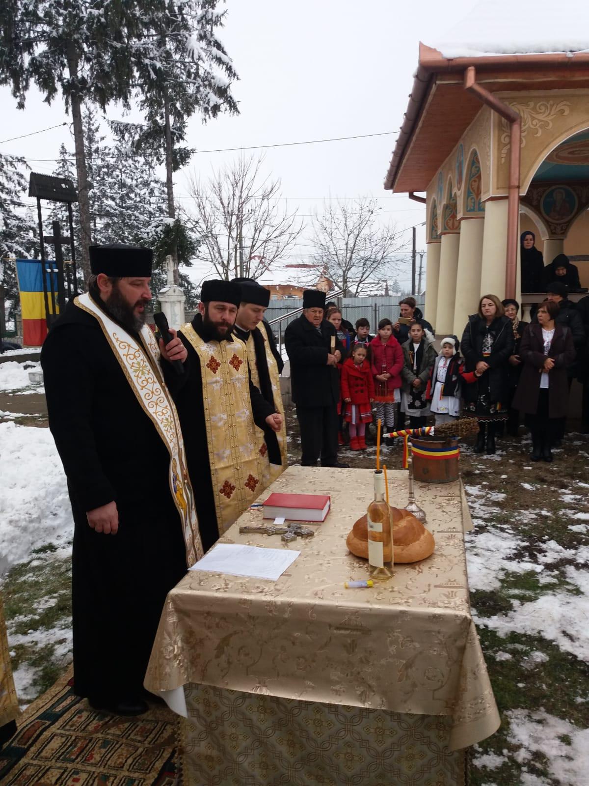 Totodată, a fost săvârșită slujba Parastasului pentru martirii neamului, precum și a sfințirii drapelului național. În cuvântul rostit cu această ocazie, părintele protopop a evidențiat dragostea cu care înaintașii noștri s-au jertfit pentru idealurile nobile și sfinte ale neamului românesc, felicitând comunitatea credincioșilor și pe părintele paroh Cornel Marcu pentru faptul că, în An Centenar, au adus cuvenita cinstire martirilor neamului.