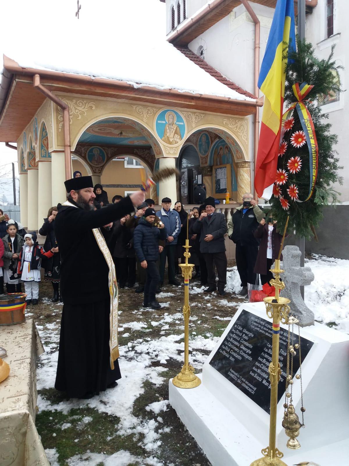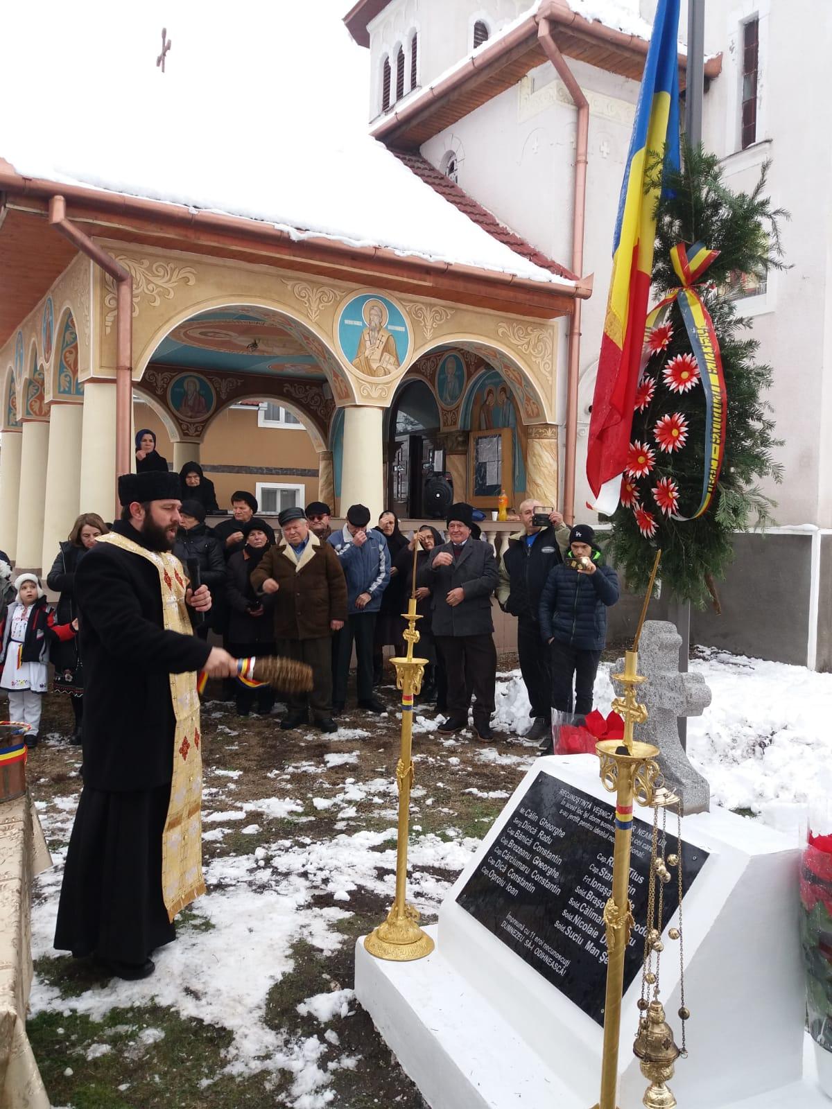 Cu acest prilej, a fost oficiată slujba de sfințire a monumentului, ridicat în vecinătatea bisericii parohiale, de către un sobor de preoți, în frunte cu părintele protopop Olimpiu Zăhan.