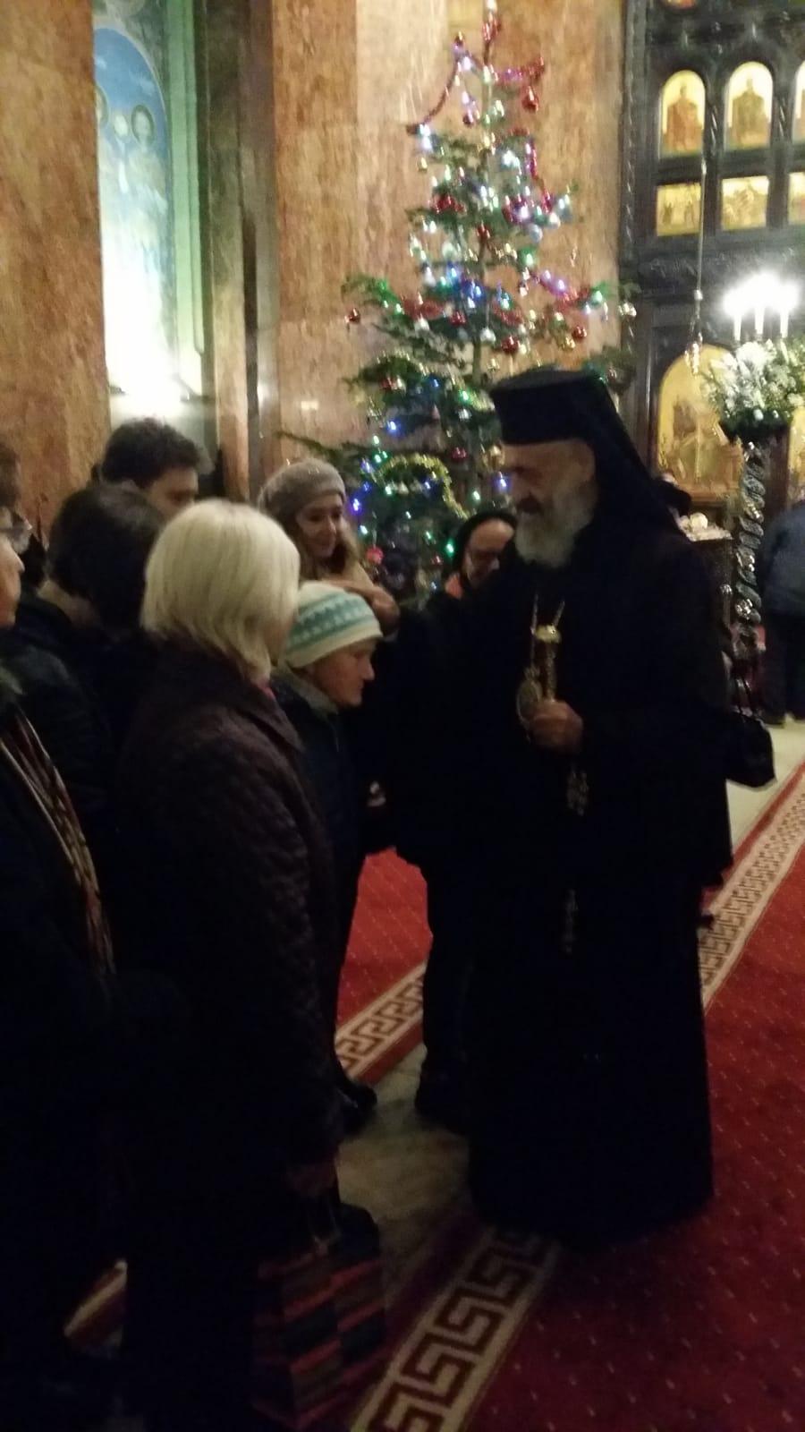 La finalul slujbei, Întâistătătorul Eparhiei noastre a adresat celor prezenți o meditație duhovnicească în care a evidențiat faptul că minunea din ieslea Betleemului din urmă cu 2000 de ani, respectiv Nașterea Domnului, ne încredințează că noi nu mai suntem orfani și părăsiți, adeverindu-ne, totodată, faptul că am devenit moștenitori ai casei Tatălui din ceruri și biruitori asupra răului. De asemenea, Arhipăstorul nostru, în acord cu versurile unui străvechi colind, i-a îndemnat pe cei de față, spunând: „Veniți, azi, toți credincioșii / Să săltăm / De Nașterea lui Hristos / Să ne bucurăm”.