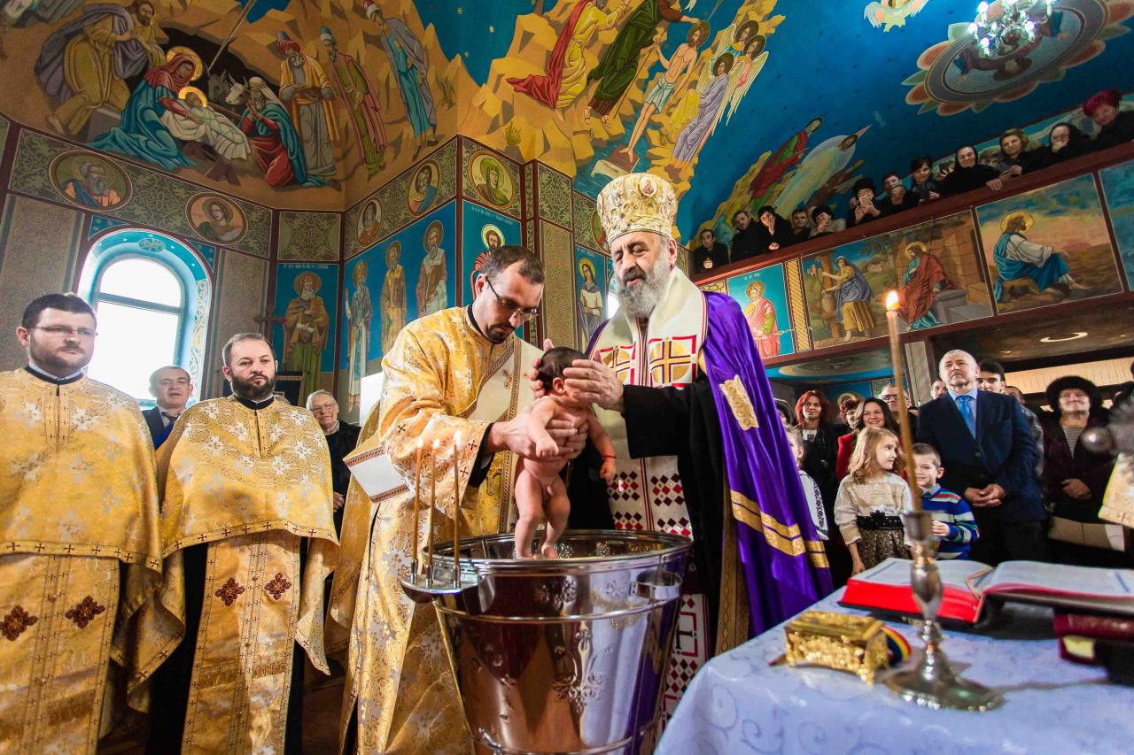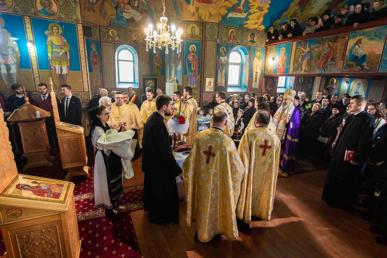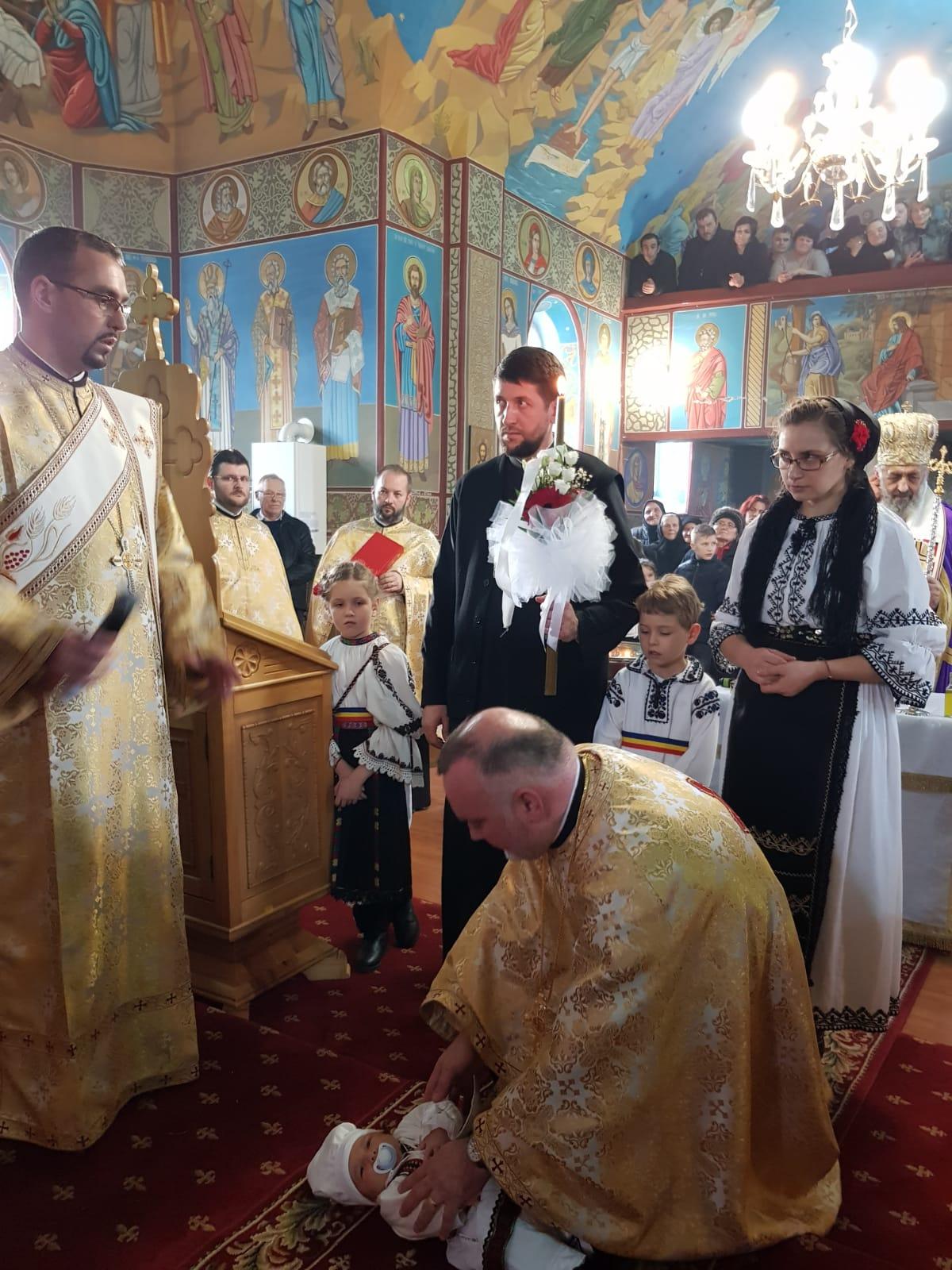 După celebrarea Sfintei Liturghii, Părintele Arhiepiscop Irineu a oficiat Taina Sfântului Botez pentru pruncul Antim-Nicolae, fiul părintelui paroh Alin Boncea. La final, Chiriarhul nostru a rostit un cuvânt de învățătură în care a reliefat importanța acestei Taine în vederea inițierii în viața duhovnicească. De asemenea, Întâistătătorul Eparhiei noastre i-a oferit pruncului nou-botezat o icoană cu Mântuitorul Iisus Hristos.