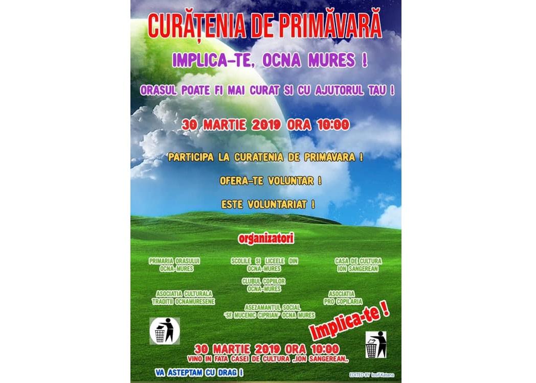 Copiii ocrotiți în cadrul Așezământului social „Sfântul Mucenic Ciprian” din Ocna Mureș se alătură campaniei de curățenie organizată de administrația locală, alături de mai multe asociații și unități de învățământ din oraș. Acțiunea intitulată „Curățenia de primăvară - Implică-te Ocna Mureș! Orașul poate fi mai curat și cu ajutorul tău!” se va desfășura sâmbătă, 30 martie, de la ora 10.00. Locul de întâlnire este Casa de Cultură „Ion Sângereanu” din Ocna Mureș, unde toți participanții vor primi mănuși și saci menajeri.