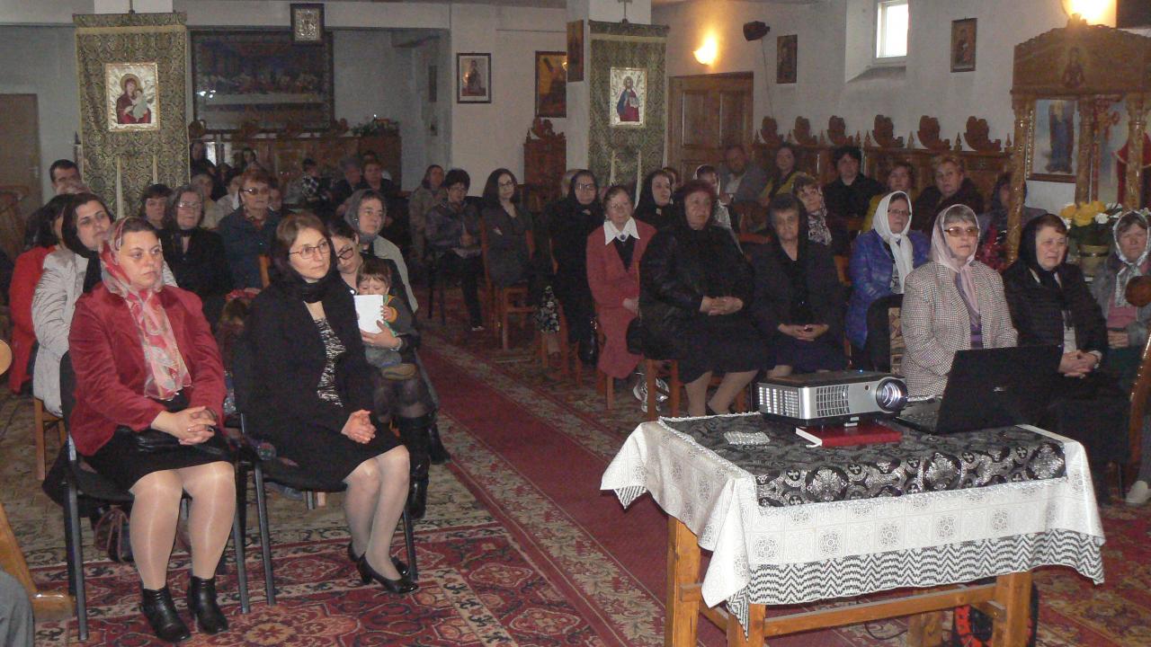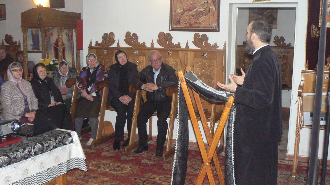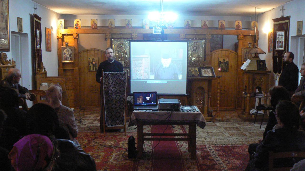 După slujba Vecerniei, părintele Sabin Vodă a schițat parcursul vieții părintelui Teofil, cu accent pe forța interioară care l-a caracterizat și pe credința deplină în purtarea de grijă a lui Dumnezeu. În a doua parte a întâlnirii, credincioșii prezenți au putut urmări un scurt film în care părintele Teofil s-a prezentat prin propriile sale cuvinte. Astfel, biserica noastră s-a umplut de frumusețe și generozitate.