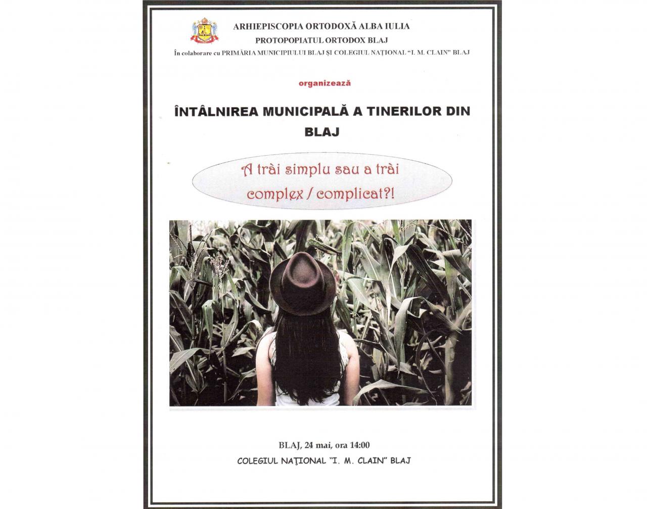 Cu binecuvântarea Înaltpreasfințitului Părinte Irineu, Arhiepiscop al Alba Iuliei, Grupul de inițiativă pentru tineret al protopopiatului Blaj organizează vineri, 24 mai 2019, începând cu ora 14.00, la Colegiul Național „Inochentie Micu Clain” din Blaj, Întâlnirea tinerilor din municipiu. Evenimentul se va desfășura în contextul proclamării de către Sfântul Sinod a anului 2019 ca An omagial al satului românesc (al preoților, învățătorilor și primarilor gospodari), acțiunea propunânu-și să reactualizeze înțelepciunea și trăirea sănătoasă a satului românesc.