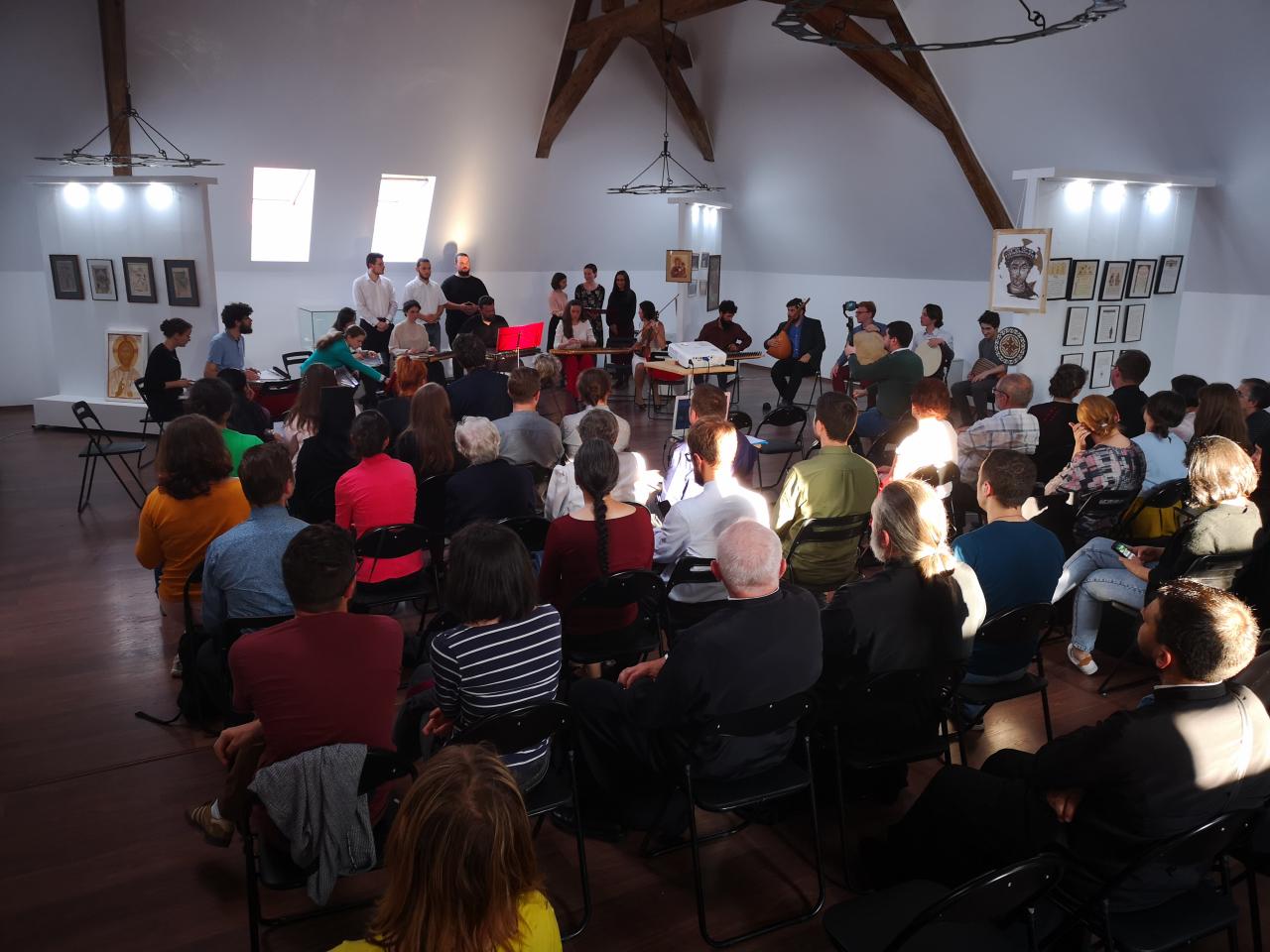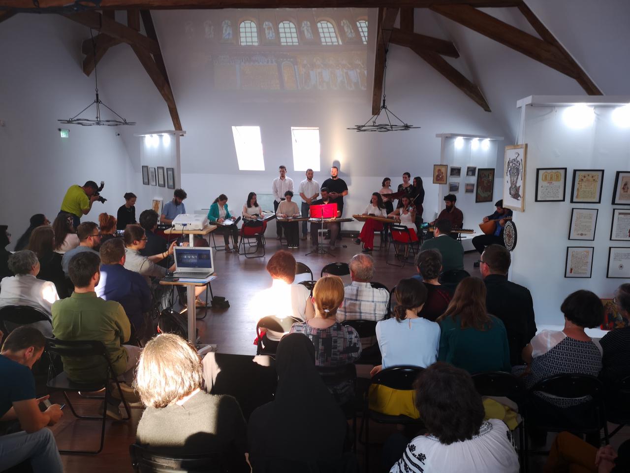 Începând cu ora 18.00, la Museikon, s-a desfășurat cea de-a doua parte a Simpozionului. Evenimentul a fost deschis printr-un recital muzical susținut de corul mixt al secției de Muzică Religioasă din cadrul Facultății de Teologie Ortodoxă din Alba Iulia, dirijat de părintele prof. univ. dr. Domin Adam. În continuare, membrii Corului „Sfântul Ioan Damaschin” au interpretat o serie de cântece tradiționale bizantine, după care au susținut un recital instrumental, aducând în atenția publicului câteva melodii originare din folclorul capadocian și cel grecesc.