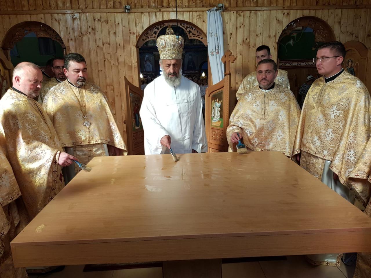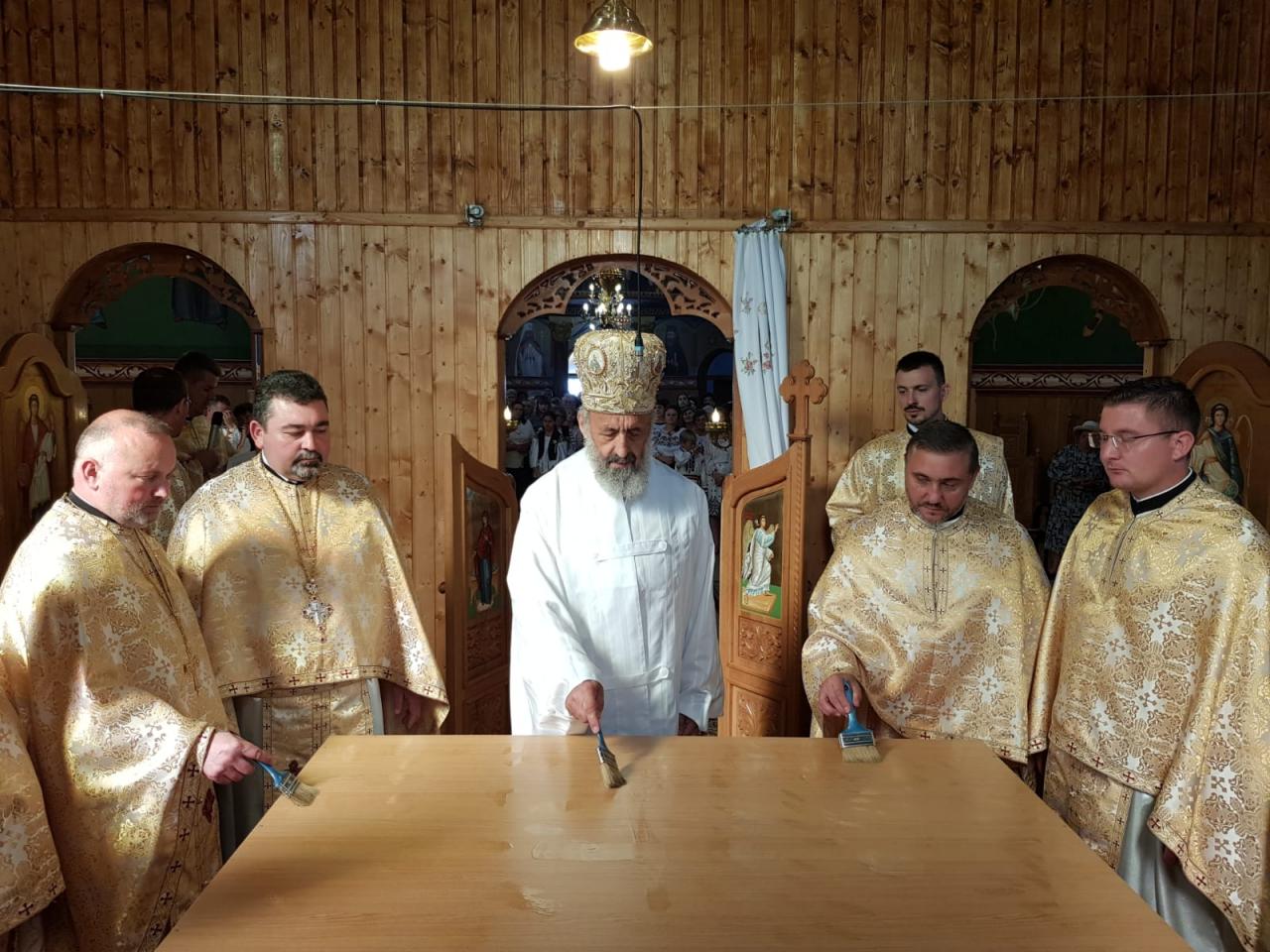 În finalul cuvântului de învățătură pe care l-a rostit, Întâistătătorul Eparhiei noastre a spus: „De patru ore suntem aici, fiind părtași la slujba de sfințire a bisericii, la Dumnezeiasca Liturghie și la hirotonia tânărului părinte Sergiu. Ne-am simțit ca în cer. De ce? Pentru că aici este prezent Hristos, Cel Care ne dă o vigoare mereu nouă, Cel Care ne ajută să găsim soluții pentru toate problemele noastre și ne învăluie în splendorile Împărăției Sale veșnice. Să credem totdeauna că în biserică locuiește Hristos Care Se apleacă asupra noastră precum se apleacă o mamă asupra micuțului ei ca să-l ajute ori de câte ori are nevoie și să-l mângâie când este trist și neliniștit. De la Hristos, «capul Bisericii», am primit cu toții astăzi cadoul dragostei Sale iertătoare și balsamul suav al harului Său sfințitor, drept pentru care vă zic dimpreună cu Psalmistul David: «Iată, acum, binecuvântați pe Domnul, cei ce locuiți în casa Domnului, în curțile casei Dumnezeului nostru»”.