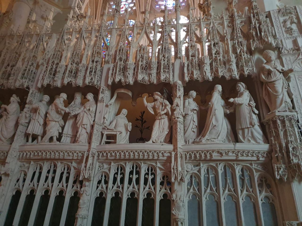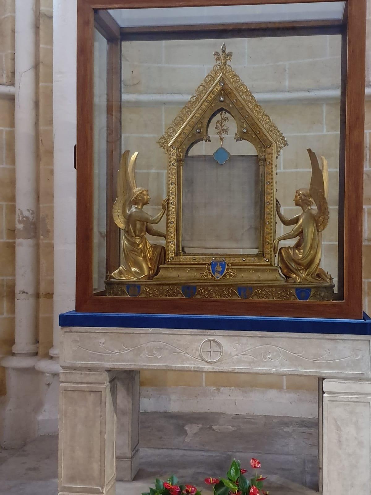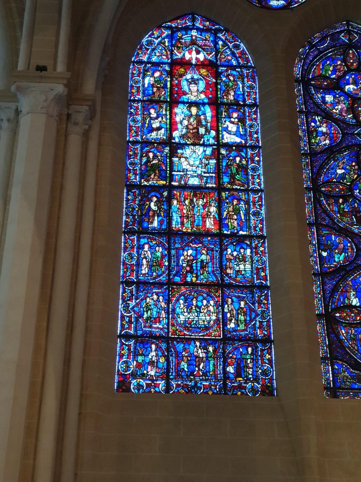 În după-amiaza acestei zile, Părintele Arhiepiscop Irineu a vizitat Catedrala Notre Dame din Chartres. Situat la 80 de km sud-vest de Paris, acest oraș are adânci rădăcini creștine încă din primele secole, când deja în jurul anului 350 exista un scaun episcopal legat de persoana episcopului Aventin și când s-a construit prima biserică creștină din acest loc. Actuala catedrală, amplasată pe același loc, datează din secolul al XI-lea și păstrează un tezaur spiritual și artistic deosebit de valoros. Vitraliile vechi ale bisericii reprezintă o podoabă prețioasă a locașului de cult, fiind desfășurate pe o suprafață de 2600 mp. Unul dintre acestea, ce o reprezintă pe Maica Domnului, are o vechime de 1000 de ani. Celebritatea orașului este datorată acestor vitralii care sunt predominate de o cromatică albastru luminoasă, cunoscută ca fiind „bleu de Chartres”. Catedrala adăpostește și un alt prețios odor: vălul Maicii Domnului, care a fost purtat de Fecioara Maria în momentul Bunei Vestiri. Acesta ar fi fost dăruit împăratului Carol cel Mare de către împărăteasa bizantină Irina.