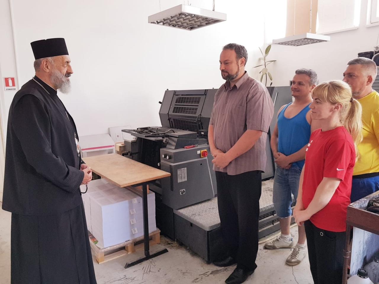 Joi, 4 iulie, începând cu ora 10.00, Înaltpreasfințitul Părinte Irineu, Arhiepiscop al Alba Iuliei, a efectuat o vizită la șantierul Tipografiei și Atelierului de lumânări din cadrul sectoarelor de producție ale Centrului eparhial. Cu acest prilej, Ierarhul nostru s-a întâlnit cu muncitorii de pe șantier și cu angajații celor două unități, cărora le-a adresat cuvinte duhovnicești. De asemenea, Întâistătătorul Eparhiei noastre i-a îndemnat să lucreze mereu cu aceeași râvnă și dragoste, amintindu-le în acest sens cuvintele Sfântului Apostol Pavel: „Orice aţi face, lucraţi din toată inima, ca pentru Domnul, şi nu ca pentru oameni”.