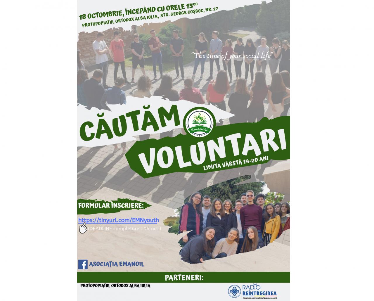 Începând cu data de 1 octombrie 2019, Asociația creștină de tineret „Emanoil”, în parteneriat cu Protopopiatul Ortodox Alba Iulia, organizează o nouă campanie de recrutare de voluntari în vederea dezvoltării personale, a capacitării abilităților tinerilor, precum și a desfășurării unor proiecte de voluntariat. În acest sens, prin intermediul voluntarilor asociației, se desfășoară o amplă acțiune de promovare a activităților de voluntariat, precum și a roadelor voluntariatului, atât în mediul online (Facebook, Instagram, Snapchat), cât și „offline”, prin sălile de clasă ale liceelor din Alba Iulia sau, pur și simplu, în grupurile de prieteni.