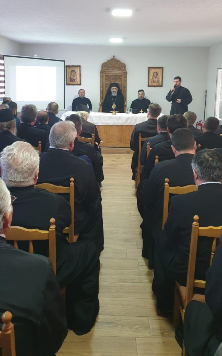 În continuare, în sala de conferințe a protopopiatului Reghin, a debutat conferința propriu-zisă. Părintele protopop Valentin Vârva a luat cuvântul și a anunțat tema lucrărilor, după care Întâistătătorul Eparhiei noastre a prezidat lucrările conferinței. Referatele au fost susținute de către părintele Horațiu Hadrian Mălinaș, preot al parohiei Jabenița, părintele Ionuț Marius Boar, păstor al credincioșilor dreptslăvitori din parohia Poarta, și părintele Vasile Stelian Anca, preot al parohiei Batoș.