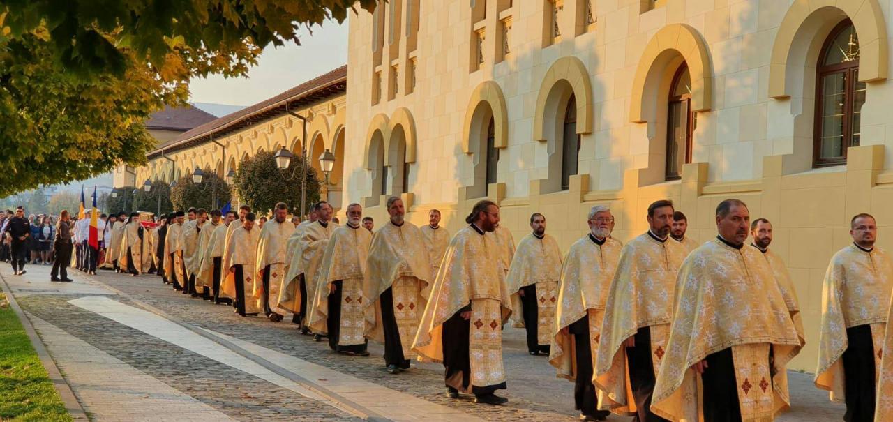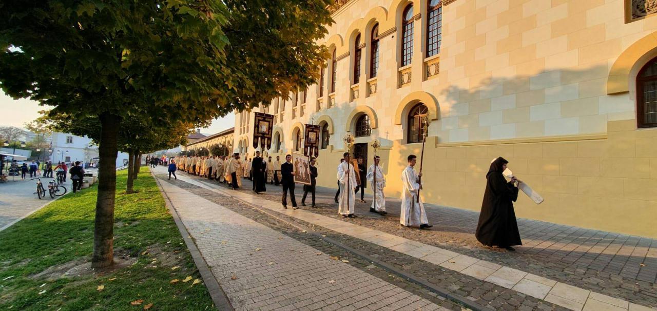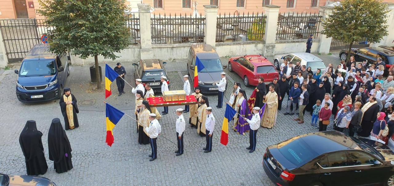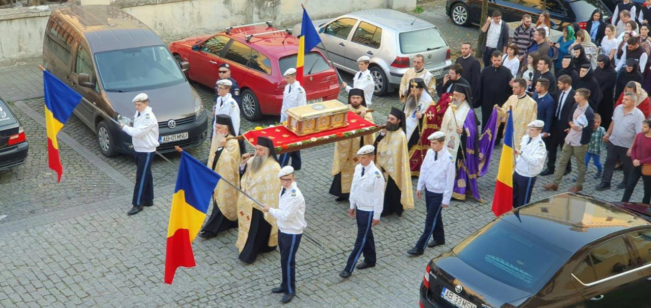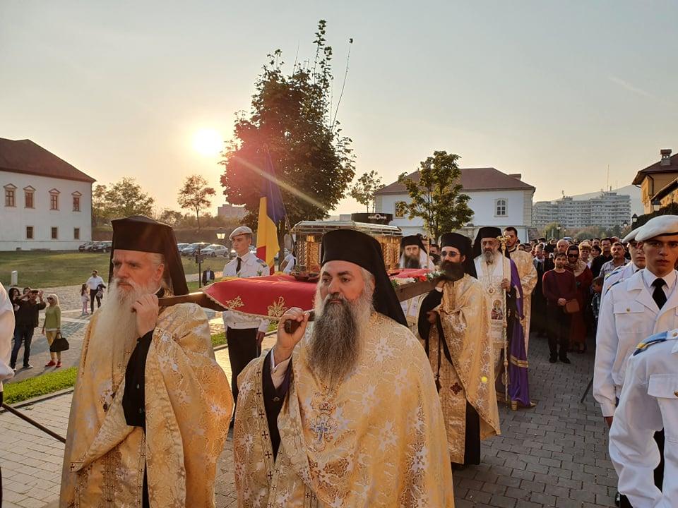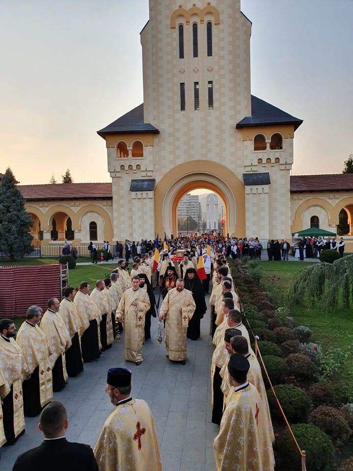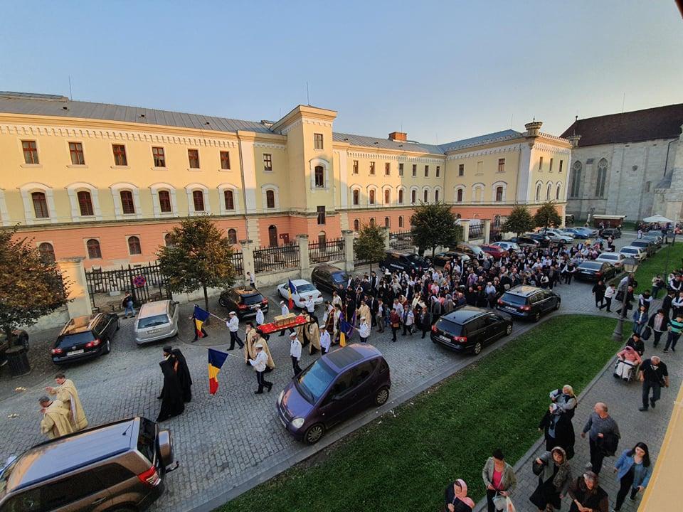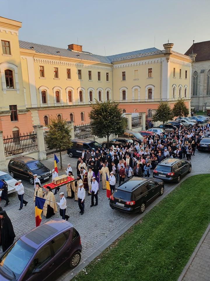 După întâmpinarea delegației, Ierarhul nostru, dimpreună cu Părintele Episcop Galaction, cu sfințiții slujitori și cu credincioșii prezenți, a luat parte la procesiunea cu sfintele moaște în jurul ansamblului Catedralei arhiepiscopale. În cuvântul de învățătură rostit cu acest prilej, Arhipăstorul nostru, făcând referire la relicvele care au fost aduse spre închinare la Catedrala Reîntregirii, a reliefat viața și pilda Sfintei Mironosițe Maria Magdalena, ca una care a fost uceniță devotată a Mântuitorului Iisus Hristos și binevestitoarea curajoasă a Învierii Domnului. De asemenea, Preasfințitul Părinte Episcop Galaction a adresat alese mulțumiri Întâistătătorului Eparhiei noastre pentru invitația de a lua parte la sărbătoarea Sfinților Mărturisitori Ardelenii, cei care au reprezentat pilde veritabile de statornicie în dreapta credință în vremuri de restriște.