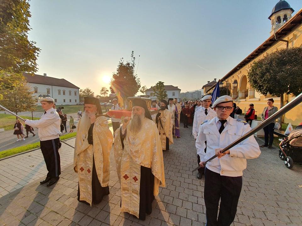 Adresându-se celor prezenți, Chiriarhul nostru a spus: „A sosit sărbătoarea mare şi luminoasă a Sfinţilor Mărturisitori Ardeleni Visarion şi Sofronie şi a Sfântului Mucenic Oprea, atleţi ai lui Hristos, stratioţi ai Duhului Sfânt, care au luptat pentru libertatea religioasă şi pentru identitatea noastră etnică în timpul stăpânirii habsburgice asupra Transilvaniei. Din pilda vieţii lor primim îndemn să iubim Ortodoxia, care ne-a făurit fiinţa şi ne-a apărat-o, fiind sufletul vieţii spirituale şi culturale a neamului nostru. Sărbătoarea noastră de la Alba Iulia este sporită în strălucirea şi în farmecul ei de prezenţa în mijlocul nostru a moaştelor Sfintei Maria Magdalena, venite acum de la Alexandria, a moaștelor acestei uceniţe a lui Hristos, cea mai credincioasă şi mai inteligentă, cea mai iubitoare şi mai generoasă din grupul femeilor din Galileea care L-au urmat pe Iisus. Ea este prima care L-a văzut pe Domnul înviat şi prima care a răspândit vestea Învierii, făcând cunoscut lumii, contemporanilor, adevărul mântuitor. De la această mare sfântă a creştinătăţii şi de la sfinţii noştri ardeleni Visarion, Sofronie şi Oprea, învăţăm să-L urmăm pe Hristos pe calea cea strâmtă şi să-L mărturisim pe El prin credinţă şi prin faptă. În felul acesta, noi putem fi creştini corecţi, creştini care trăiesc în conformitate cu credinţa lor, creştini nu în teorie, ci în practică. Urmându-L pe Hristos, noi putem fi martori credincioşi ai Lui în societatea noastră contemporană desfigurată de păcate şi marcată de oboseală în credinţă, lipsuri şi atâtea suferinţe”.