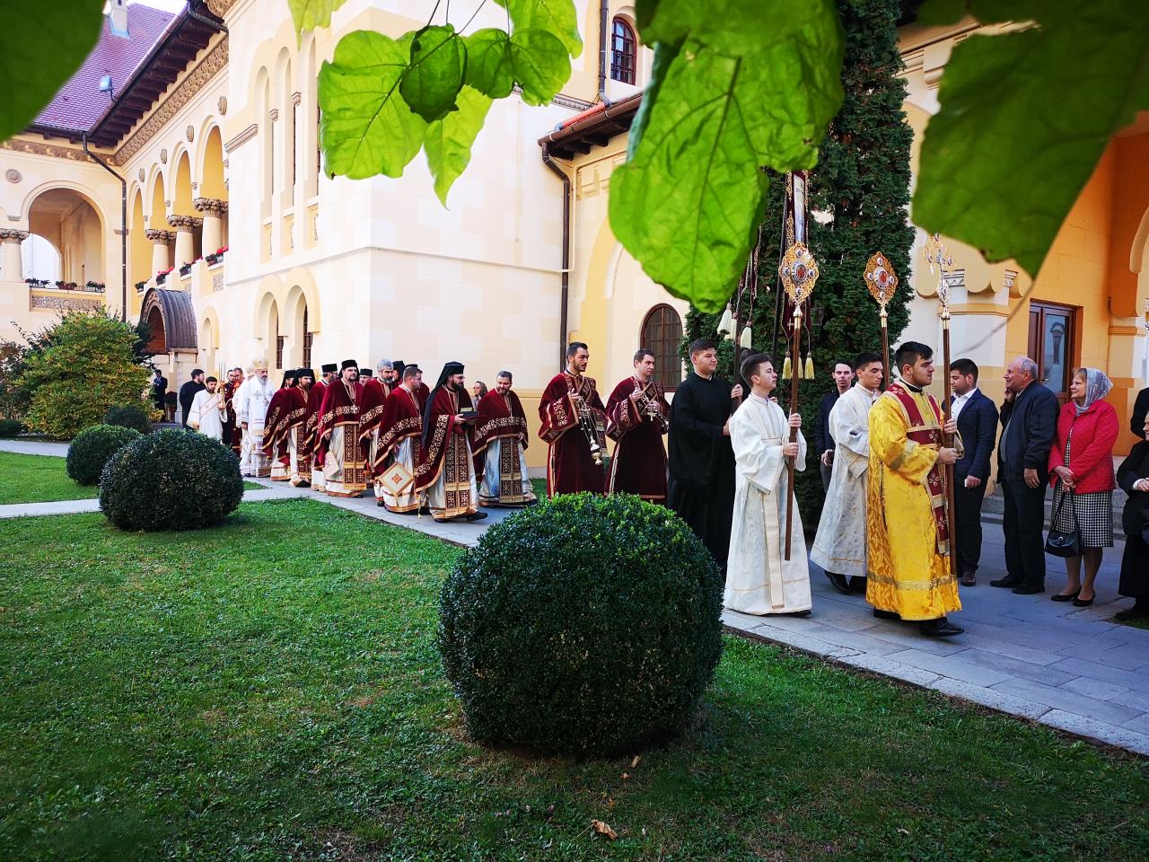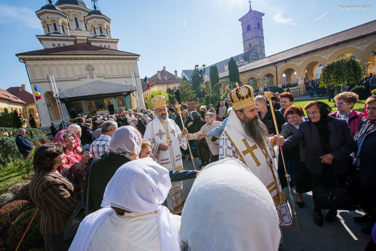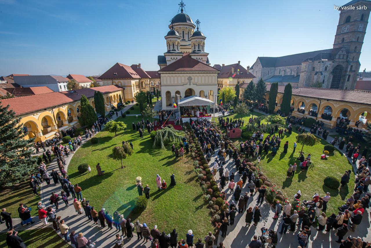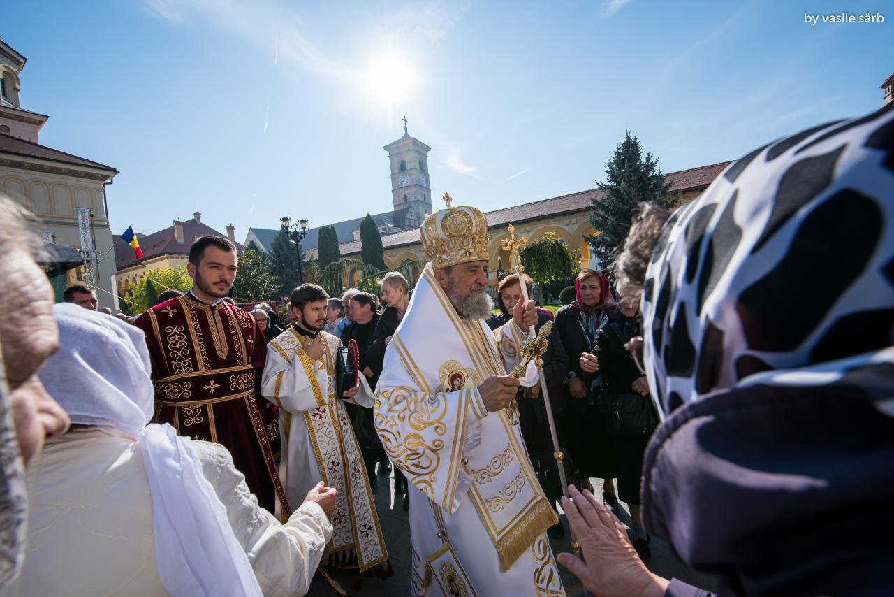 Luni, 21 octombrie 2019, zi în care Biserica noastră face pomenirea Sfinților Cuvioși Mărturisitori Visarion și Sofronie, a Sfântului Mucenic Oprea și a Sfinților Preoți Mărturisitori Ioan din Galeș și Moise Măcinic din Sibiel, Arhiepiscopia Alba Iuliei a îmbrăcat haină de sărbătoare. Cu acest prilej, la Catedrala Reîntregirii, Dumnezeiasca Liturghie a Sfântului Ioan Gură de Aur a fost oficiată de către un sobor de arhierei, preoți și diaconi, din care au făcut parte Înaltpreasfințitul Părinte Laurențiu, Arhiepiscopul Sibiului și Mitropolitul Ardealului, Înaltpreasfințitul Părinte Irineu, Arhiepiscop al Alba Iuliei, și Preasfințitul Părinte Galaction, Episcopul Alexandriei și Teleormanului.