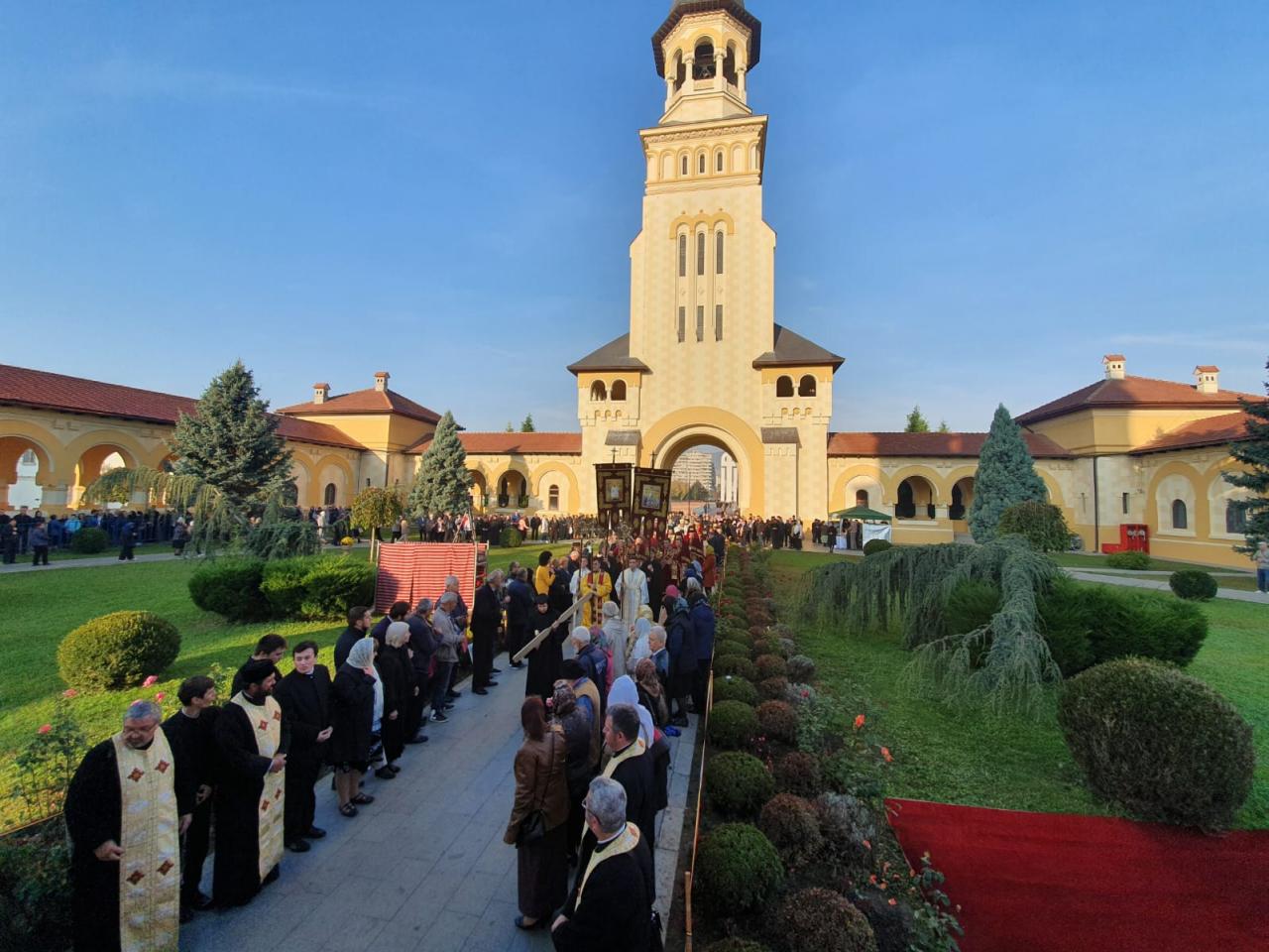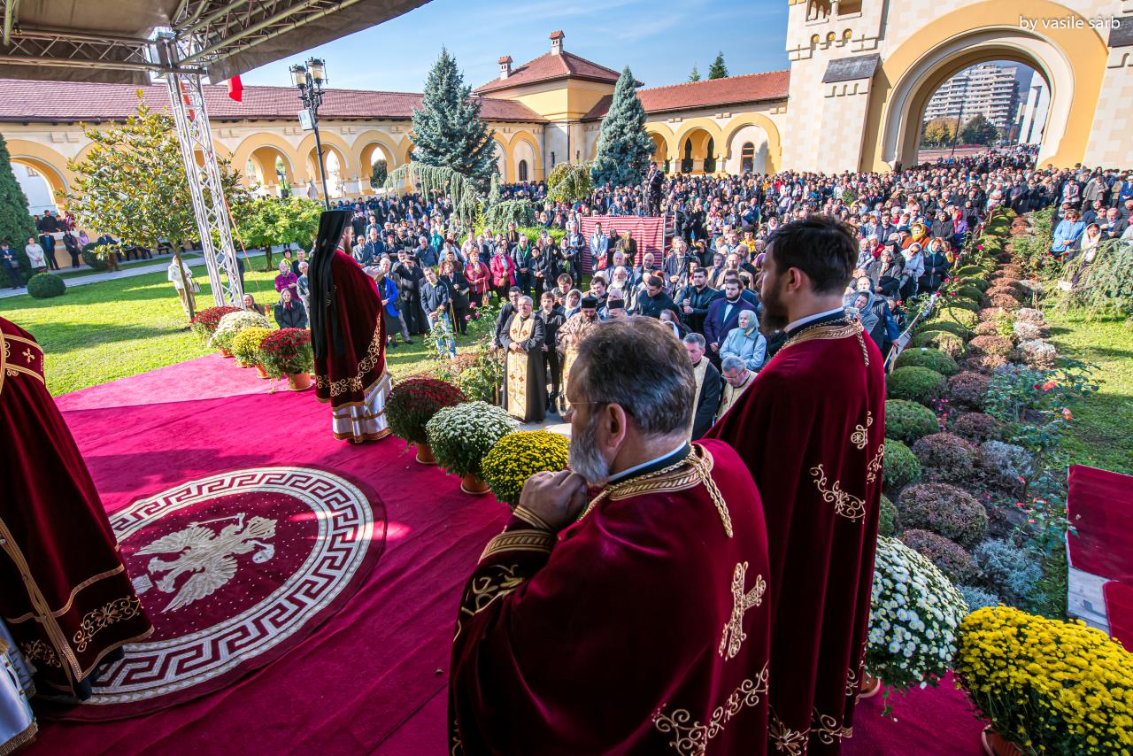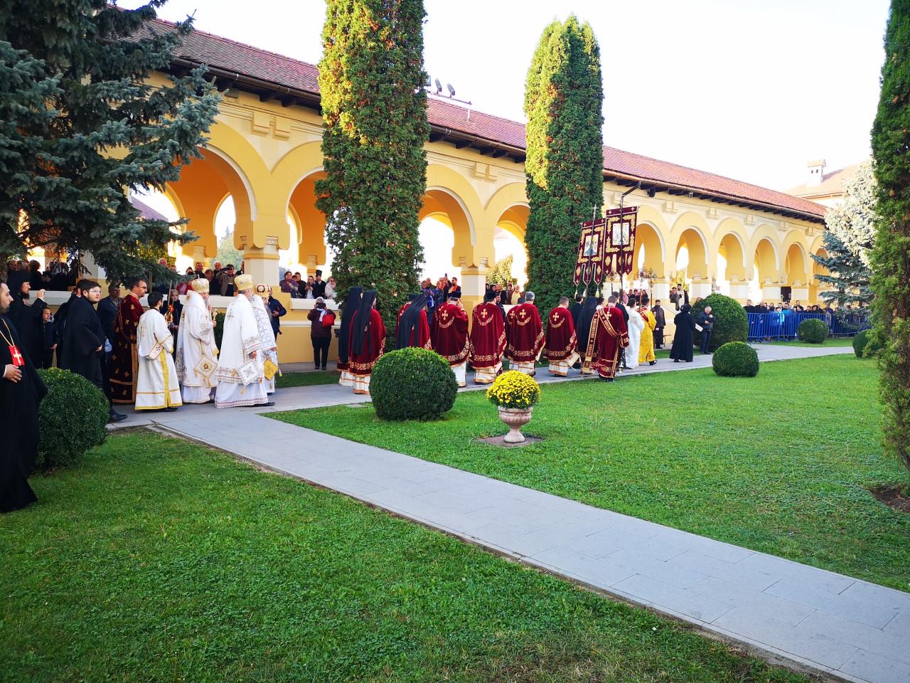 Luni, 21 octombrie 2019, zi în care Biserica noastră face pomenirea Sfinților Cuvioși Mărturisitori Visarion și Sofronie, a Sfântului Mucenic Oprea și a Sfinților Preoți Mărturisitori Ioan din Galeș și Moise Măcinic din Sibiel, Arhiepiscopia Alba Iuliei a îmbrăcat haină de sărbătoare. Cu acest prilej, la Catedrala Reîntregirii, Dumnezeiasca Liturghie a Sfântului Ioan Gură de Aur a fost oficiată de către un sobor de arhierei, preoți și diaconi, din care au făcut parte Înaltpreasfințitul Părinte Laurențiu, Arhiepiscopul Sibiului și Mitropolitul Ardealului, Înaltpreasfințitul Părinte Irineu, Arhiepiscop al Alba Iuliei, și Preasfințitul Părinte Galaction, Episcopul Alexandriei și Teleormanului.