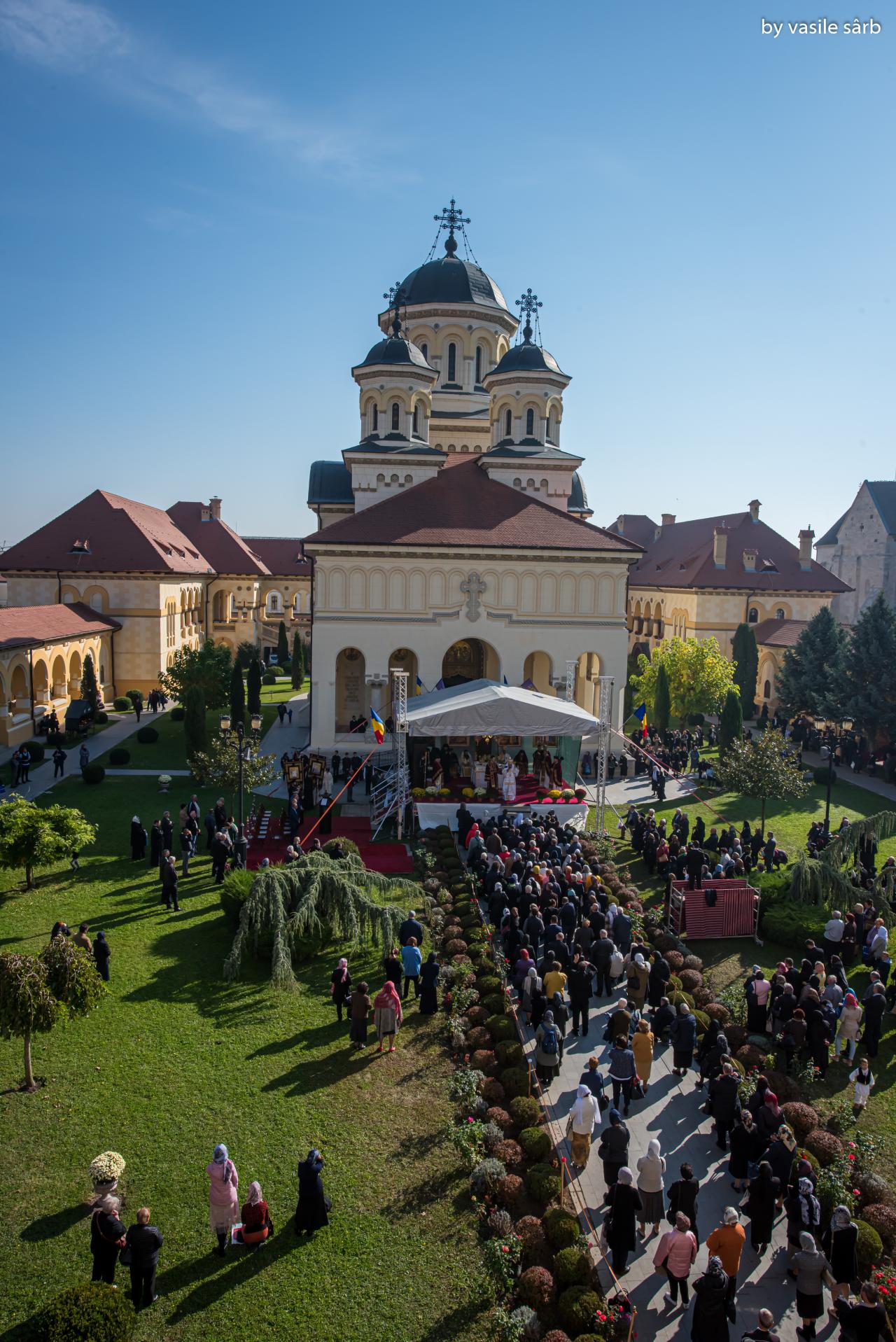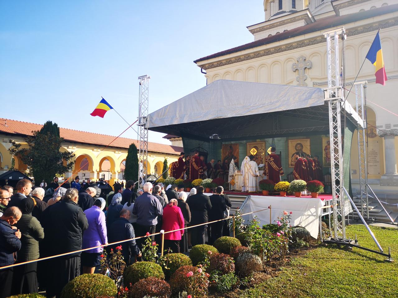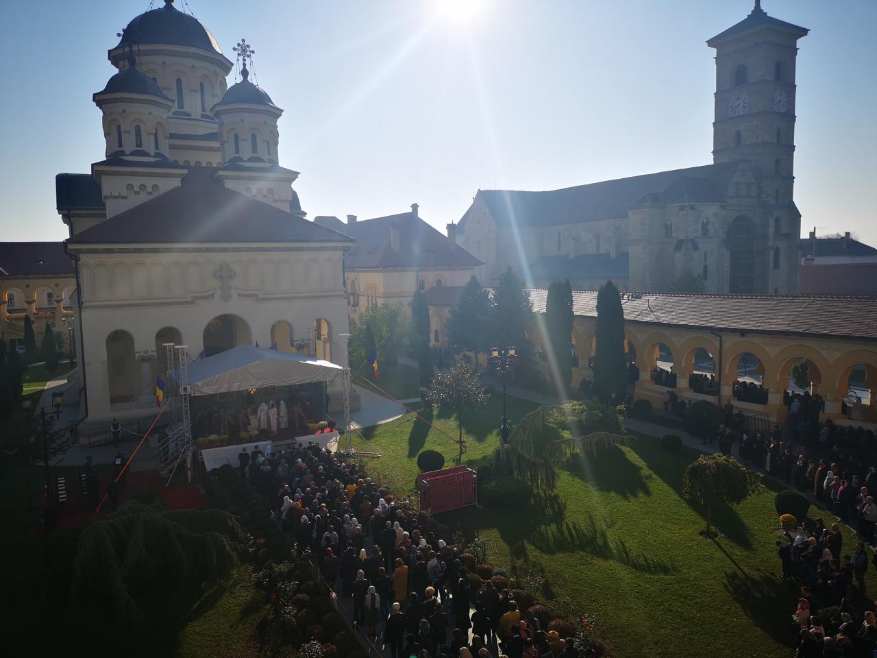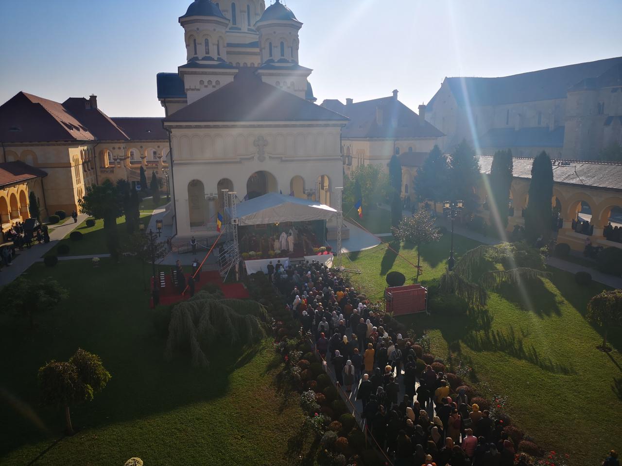 Luni, 21 octombrie 2019, zi în care Biserica noastră face pomenirea Sfinților Cuvioși Mărturisitori Visarion și Sofronie, a Sfântului Mucenic Oprea și a Sfinților Preoți Mărturisitori Ioan din Galeș și Moise Măcinic din Sibiel, Arhiepiscopia Alba Iuliei a îmbrăcat haină de sărbătoare. Cu acest prilej, la Catedrala Reîntregirii, Dumnezeiasca Liturghie a Sfântului Ioan Gură de Aur a fost oficiată de către un sobor de arhierei, preoți și diaconi, din care au făcut parte Înaltpreasfințitul Părinte Laurențiu, Arhiepiscopul Sibiului și Mitropolitul Ardealului, Înaltpreasfințitul Părinte Irineu, Arhiepiscop al Alba Iuliei, și Preasfințitul Părinte Galaction, Episcopul Alexandriei și Teleormanului.