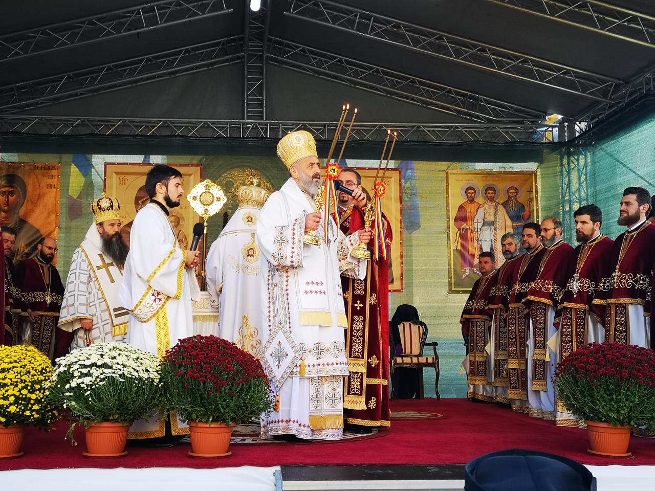 Începând cu ora 8.00, a fost săvârșită slujba Utreniei, după care soborul de ierarhi, preoți și diaconi a pornit în procesiune spre esplanada din fața Catedralei arhiepiscopale, unde a fost oficiată Dumnezeiasca Liturghie. În cadrul sfintei slujbe, cuvântul de învățătură a fost rostit de către părintele arhimandrit Ioachim Tomoiagă, vicar eparhial al Arhiepiscopiei Sibiului, care a reliefat viața și pilda Sfinților Mărturisitori Ardeleni, recunoscuți ca fiind vajnici apărători ai dreptei credințe prin faptă și cuvânt în decursul secolului al XVIII-lea.