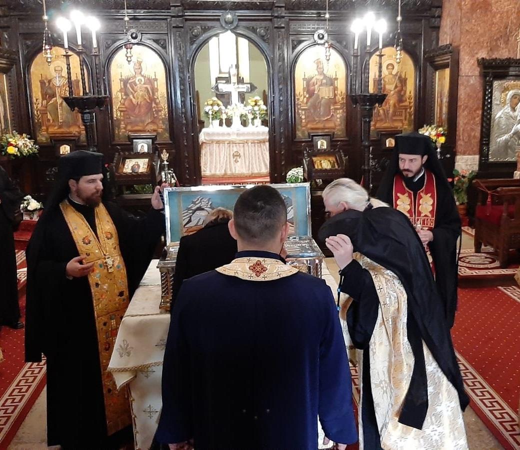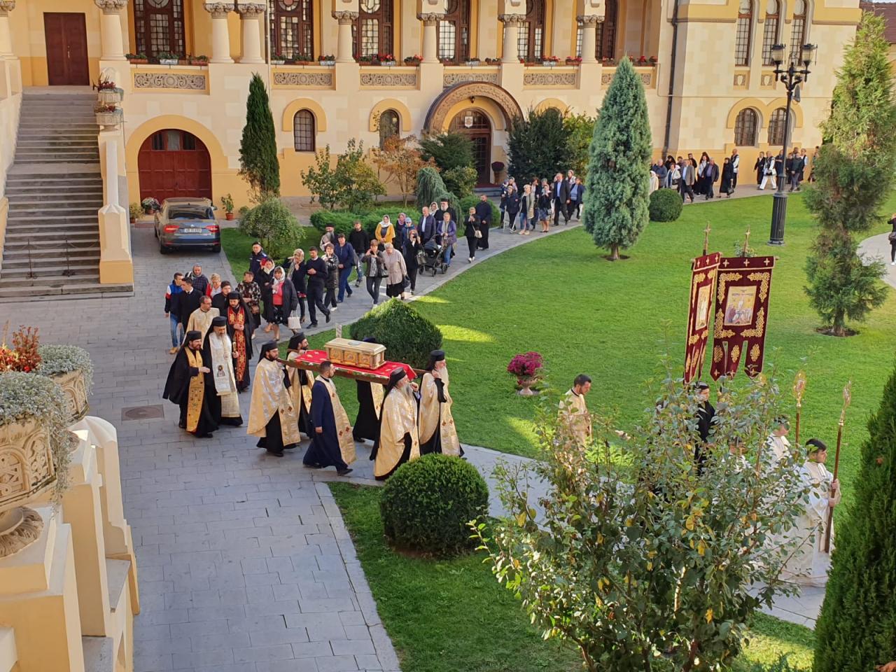 Marți, 22 octombrie a.c., începând cu ora 10.00, Înaltpreasfințitul Părinte Irineu, Arhiepiscop al Alba Iuliei, a fost prezent la Catedrala Reîntregirii. Ierarhul nostru, înconjurat de un sobor de preoți și diaconi, a oficiat o slujbă de mulțumire și a rostit un cuvânt duhovnicesc cu prilejul plecării delegației cu racla care adăpostește un fragment din cinstitele moaște ale Sfintei Mironosițe Maria Magdalena. După oficierea slujbei, Întâistătătorul Eparhiei noastre a luat parte, dimpreună cu sfințiții slujitori și numeroșii credincioși, la procesiunea cu sfintele moaște în jurul Catedralei arhiepiscopale.