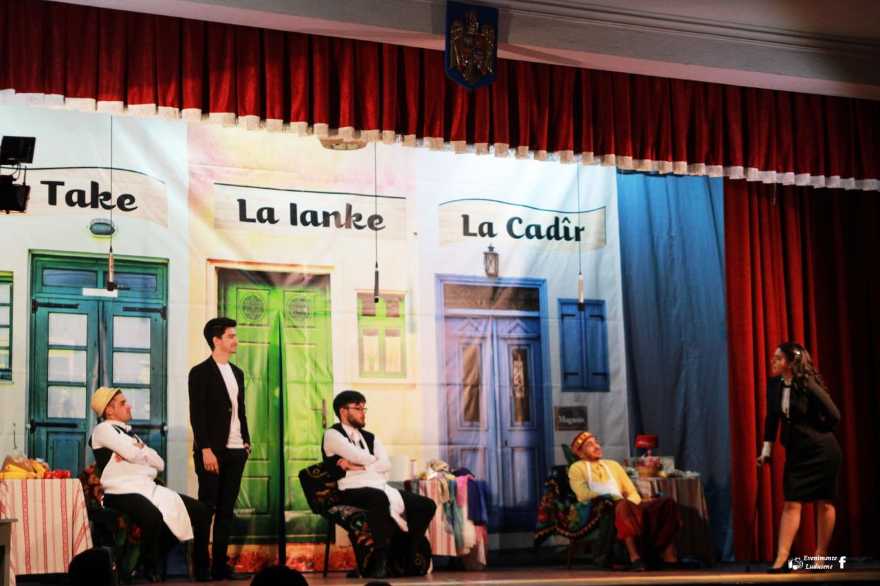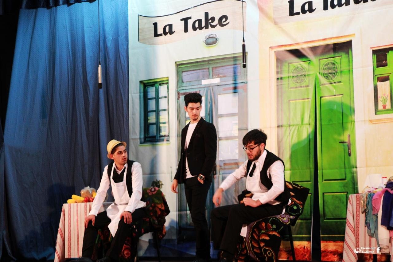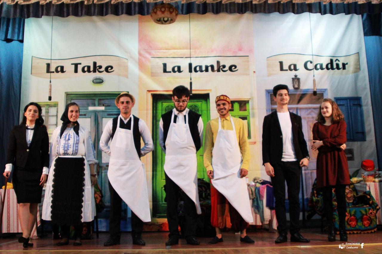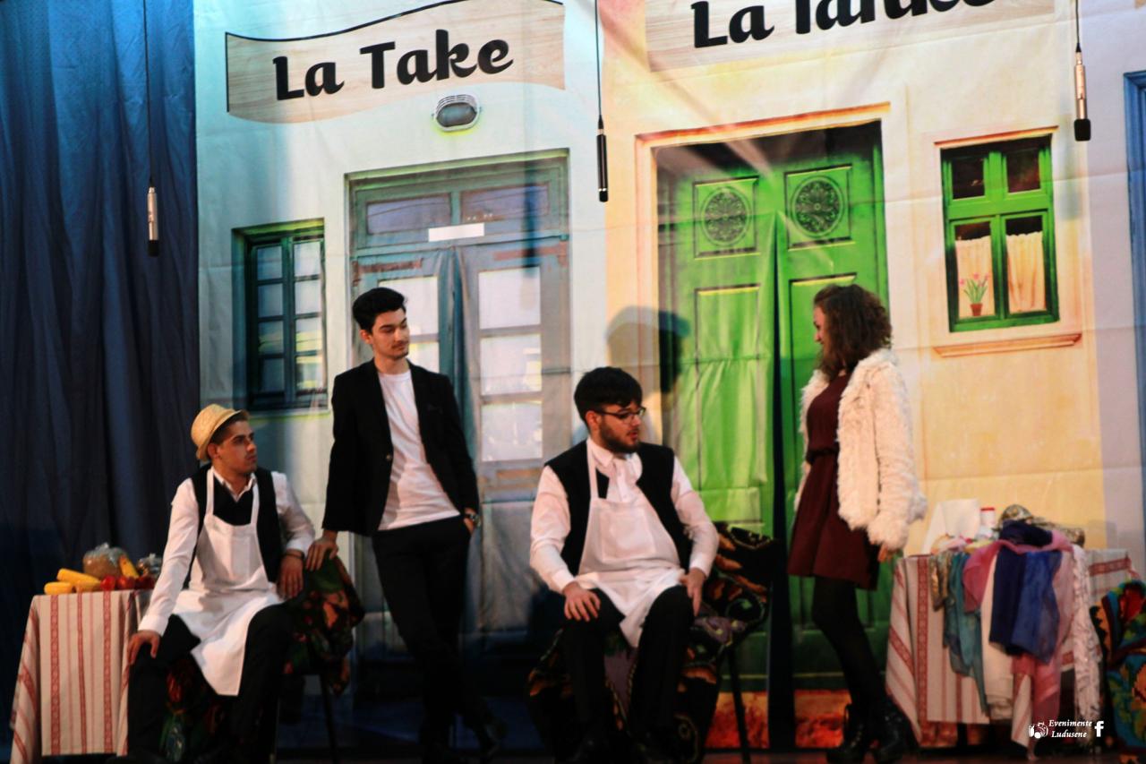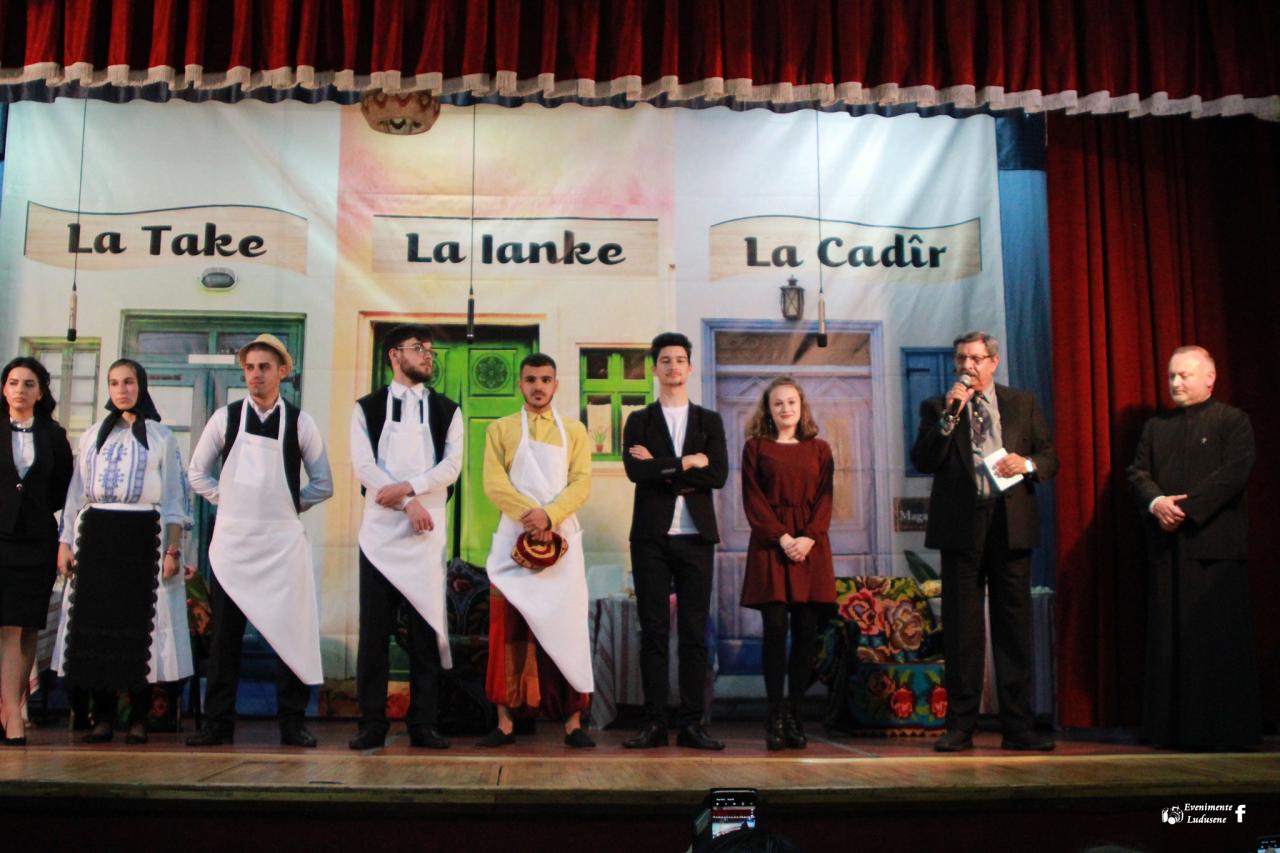 Evenimentul s-a desfășurat în Sala Mare a Casei de Cultură „Pompeiu Hărășteanu” din Luduș, în organizarea Protopopiatului Ortodox Luduș, a Primăriei și a instituției de cultură ludușene, reușind să adune sute de persoane dornice să-i susțină pe tinerii actori. În cele șapte roluri au fost distribuiți tineri din Luduș, artiști amatori, dar talentați: Ionuț Gabriel Grec (Take), David Voșloban (Ianke), Andrei Bologa (Cadîr), Oana Ruxandra Vidru (Ana), Alex Mărginean (Ionel), Luisa Morar (Rachela), Alice Andreea Bologa (Safta), care au reușit să aducă zâmbetul pe chipurile celor prezenți, prin comicul de limbaj, de situație, precum și prin jocul de scenă magistral realizat, fiind răsplătiți cu aplauze îndelungi.
