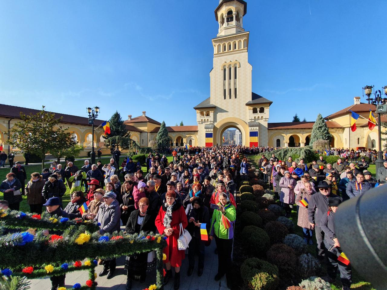 Cu ocazia Zilei Naționale a României, duminică, 1 decembrie 2019, începând cu ora 12.00, pe esplanada special amenajată în fața Catedralei Reîntregirii, Înaltpreasfințitul Părinte Irineu, Arhiepiscop al Alba Iuliei, a oficiat slujba de Te-Deum, în semn de mulțumire adusă lui Dumnezeu pentru toate binefacerile revărsate asupra poporului nostru de-a lungul timpului. La eveniment a fost prezent domnul Ludovic Orban, Prim-ministrul României, alături de care s-au aflat numeroase oficialităţi de stat, centrale şi locale. Cu ocazia împlinirii a 101 ani de la făurirea statului național unitar român, la Catedrala arhiepiscopală din Alba Iulia au fost prezenți, încă de la primele ore ale dimineții, mii de credincioși proveniți din toate colțurile țării, dar și de peste hotare. La finalul slujbei, Părintele Arhiepiscop Irineu a adresat un vibrant cuvânt celor prezenți, în care a reliefat însemnătatea istorică a mărețului eveniment de la 1 Decembrie 1918.