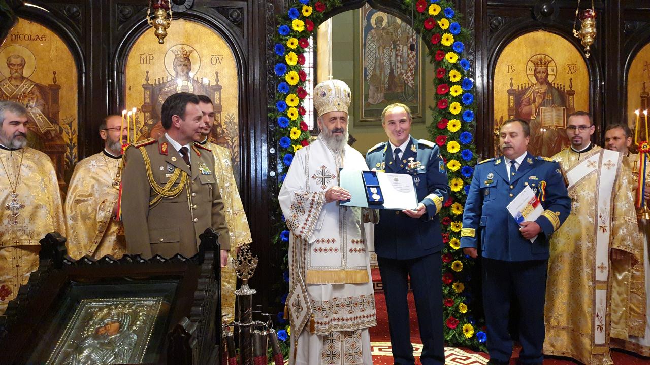 La finalul Sfintei Liturghii, Ierarhul nostru i-a oferit domnului General Locotenent Mihai Șomordolea, Consilier de Stat în Departamentul Securității Naționale la Secretariatul Consiliului Suprem de Apărare a Țării, Ordinul „Credință și Unire”, în semn de apreciere pentru slujirea rodnică și folositoare a Bisericii lui Hristos în care și-a manifestat credința lucrătoare prin iubire. Totodată, aceeași distincție i-a fost oferită domnului Comandor Cristian Manolachi, Șef al resurselor umane al Statului Major al Forțelor Aeriene, și domnului General-Maior Viorel Pană, Șeful Statului Major al Forțelor Aeriene. De asemenea, domnul General-Maior Viorel Pană i-a conferit Înaltpreasfințitului Părinte Arhiepiscop Irineu distincția „Emblema de Onoare a Forţelor Aeriene”, în semn de aleasă prețuire pentru contribuția adusă la cultivarea respectului pentru simbolurile naționale și promovarea imaginii Forțelor Aeriene și a Armatei României.