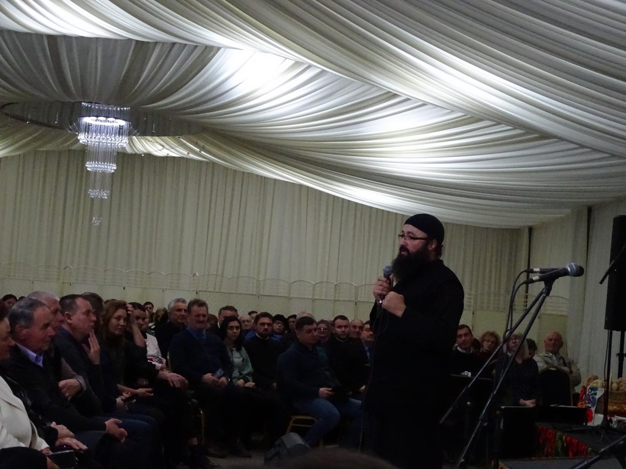 Evenimentul cultural-duhovnicesc organizat în perioada liturgică a Postului Nașterii Domnului a debutat cu interpretarea a trei colinde de către grupul de tineri „Bucuria comuniunii” al parohiei Reghin – Apalina, condus de părintele Vasile Farcaș. Momentul a fost urmat de conferința părintelui Visarion Alexa din București, intitulată „7 Cuvinte ale Iubirii”, urmată de concertul de colinde și cântece de Crăciun susținut de Corala „Armonia” din Constanța, dirijată de părintele arhidiacon Iulian Dumitru.