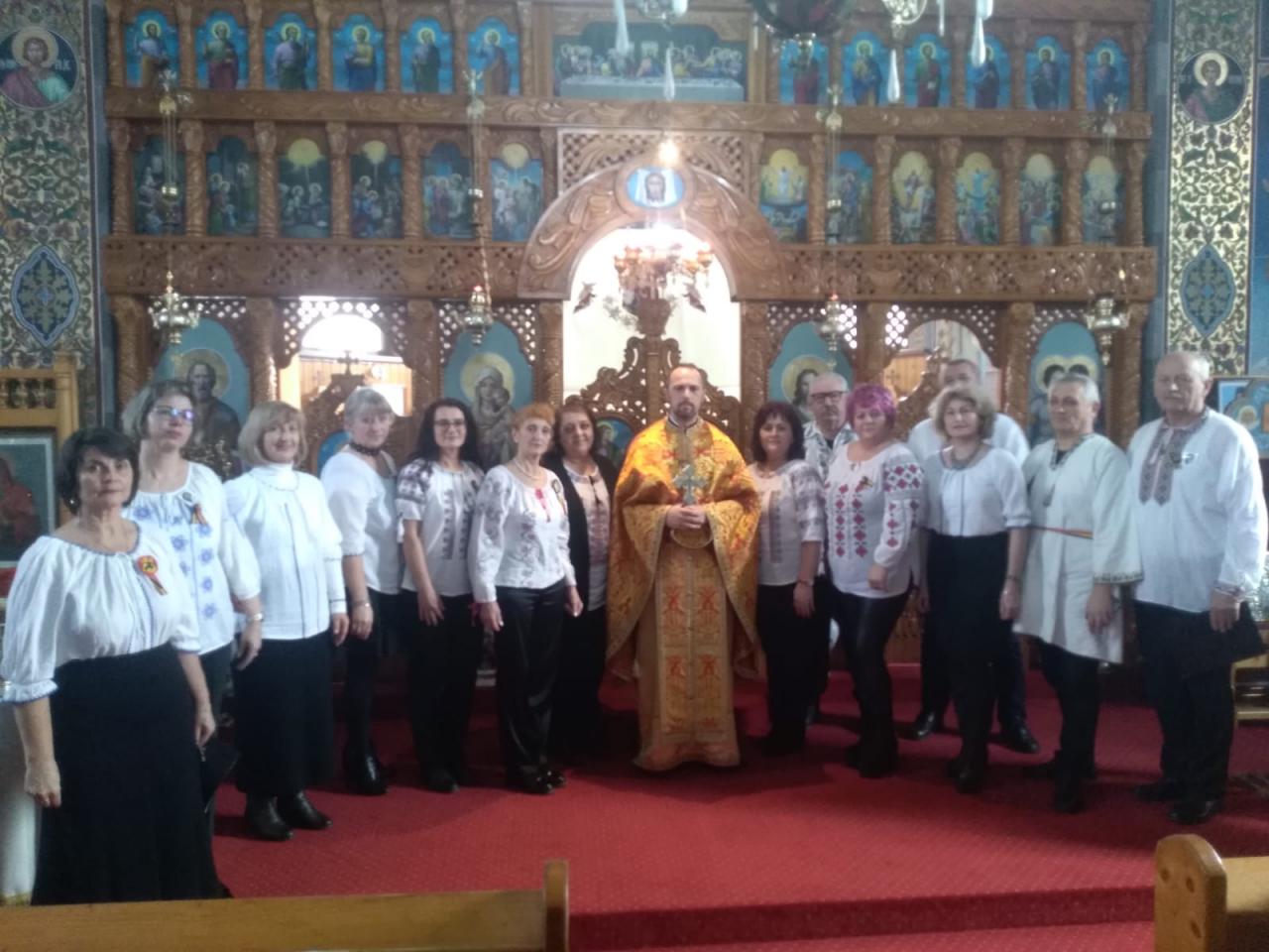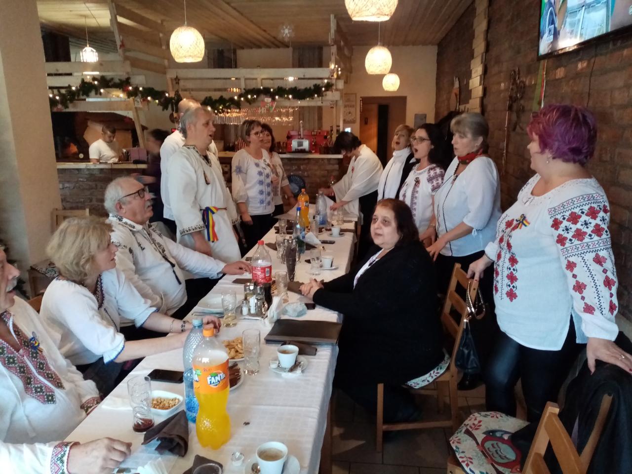 După săvârșirea Sfintei Liturghii, oaspeții noștri au susținut un recital de colinde, spre emoția și bucuria credincioșilor prezenți. La sfârșitul concertului, cele două coruri au fost invitate la o agapă frățească, unde, pe lângă faptul că au colindat gazdele, au fost puse bazele unei bune colaborări care nădăjduim să aducă mult folos celor două comunități parohiale.