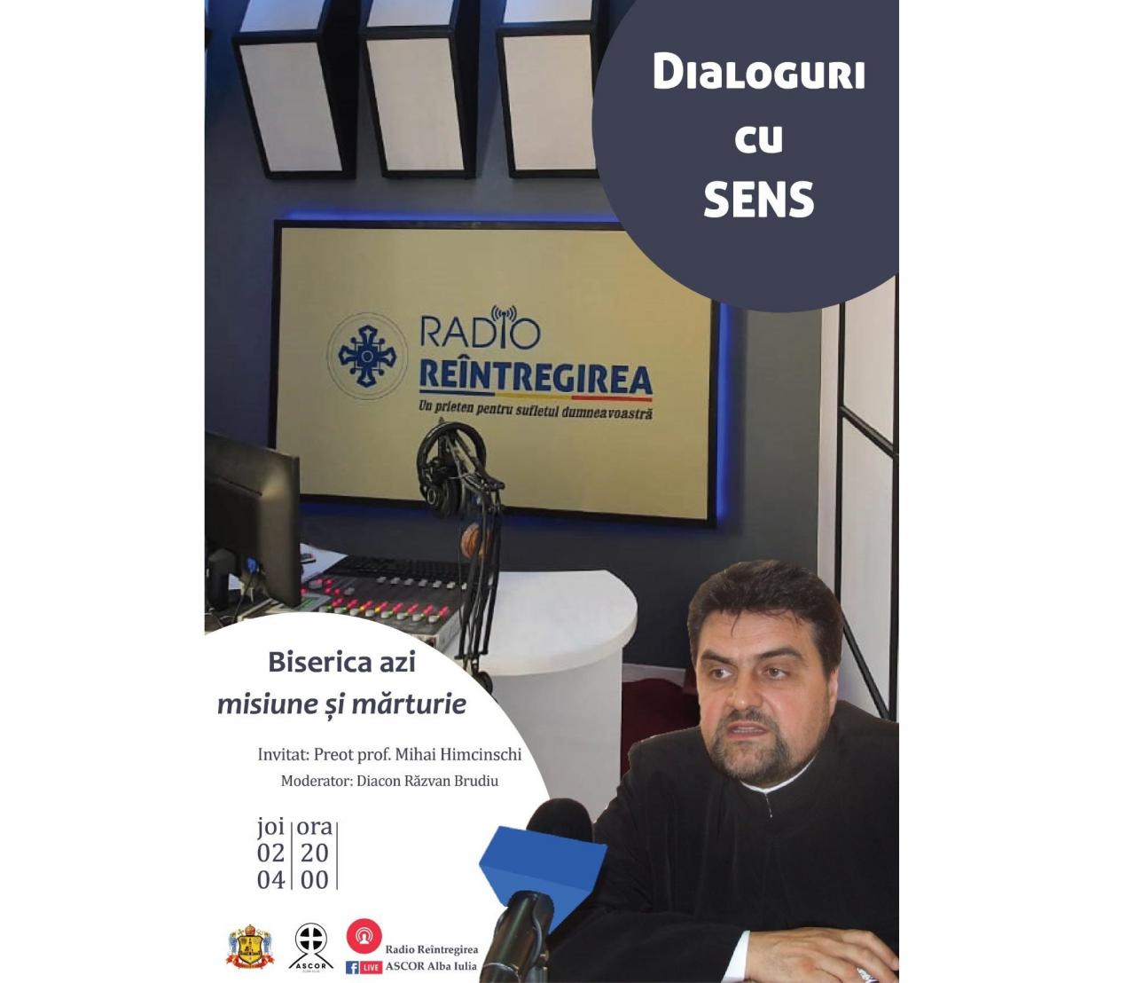 Derulate sub genericul „Dialoguri cu Sens”, întâlnirile vor avea loc în fiecare săptămână, în zilele de luni şi joi, de la ora 20.00, fiind abordate diferite teme de actualitate care frământă societatea contemporană. De asemenea, invitatul fiecărei ediții va oferi răspunsuri punctuale întrebărilor adresate în scris de către urmăritori, pe reţelele de socializare. Premiera acestei serii de întâlniri va avea loc joi, 2 aprilie, în compania părintelui diacon Răzvan Brudiu, invitatul conferinței fiind părintele profesor Mihai Himcinschi, decanul Facultăţii de Teologie Ortodoxă din Alba Iulia. Tema propusă pentru prima întâlnire este intitulată „Biserica azi: misiune şi mărturie”.