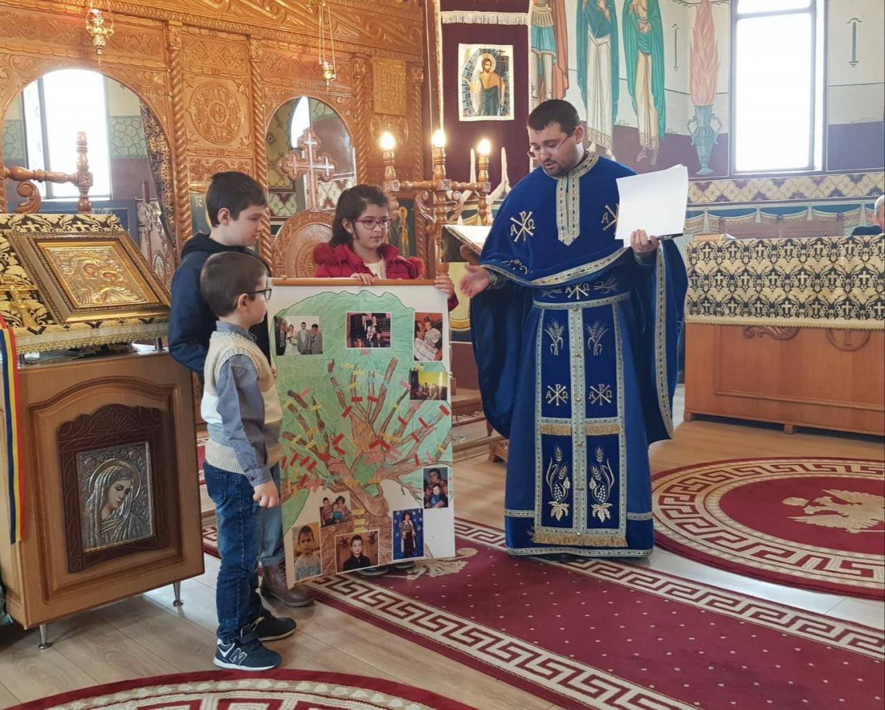Activitatea 2: Organizarea seminarului-concurs „Arborele genealogic al familiei mele”. În cadrul activității elevii au realizat arborele genealogic al familiei din care provin, având folosindu-se de instrumente inedite, pentru a obține cele mai frumoase și originale lucrări: fotografii de familie, desene, obiecte decorative, etc. Pentru realizarea unor lucrări cât mai bine documentate, a fost încurajată munca în echipă cu părinții, în vederea cunoașterii istoricului familial, dar și pentru a petrece timp constructiv în familie, „depănând” amintiri și întâmplări inedite din trecutul familiei. Astfel, elevii au reușit să se identifice cu acuratețe cu „înaintașii” lor din prisma asemănărilor fizice, obiceiurilor, hobby-urilor, preferințelor, îndeletnicirilor, etc. și au aflat cu surprindere de ocupațiile pe care astăzi oamenii nu le mai practică. Lucrările rezultate au fost prezentate, iar cele mai apreciate au fost premiate cu diplome, premii în bani, icoane și cărți religioase, de rugăciune și literatură (valoarea totală a acestora fiind de 809,00 lei).