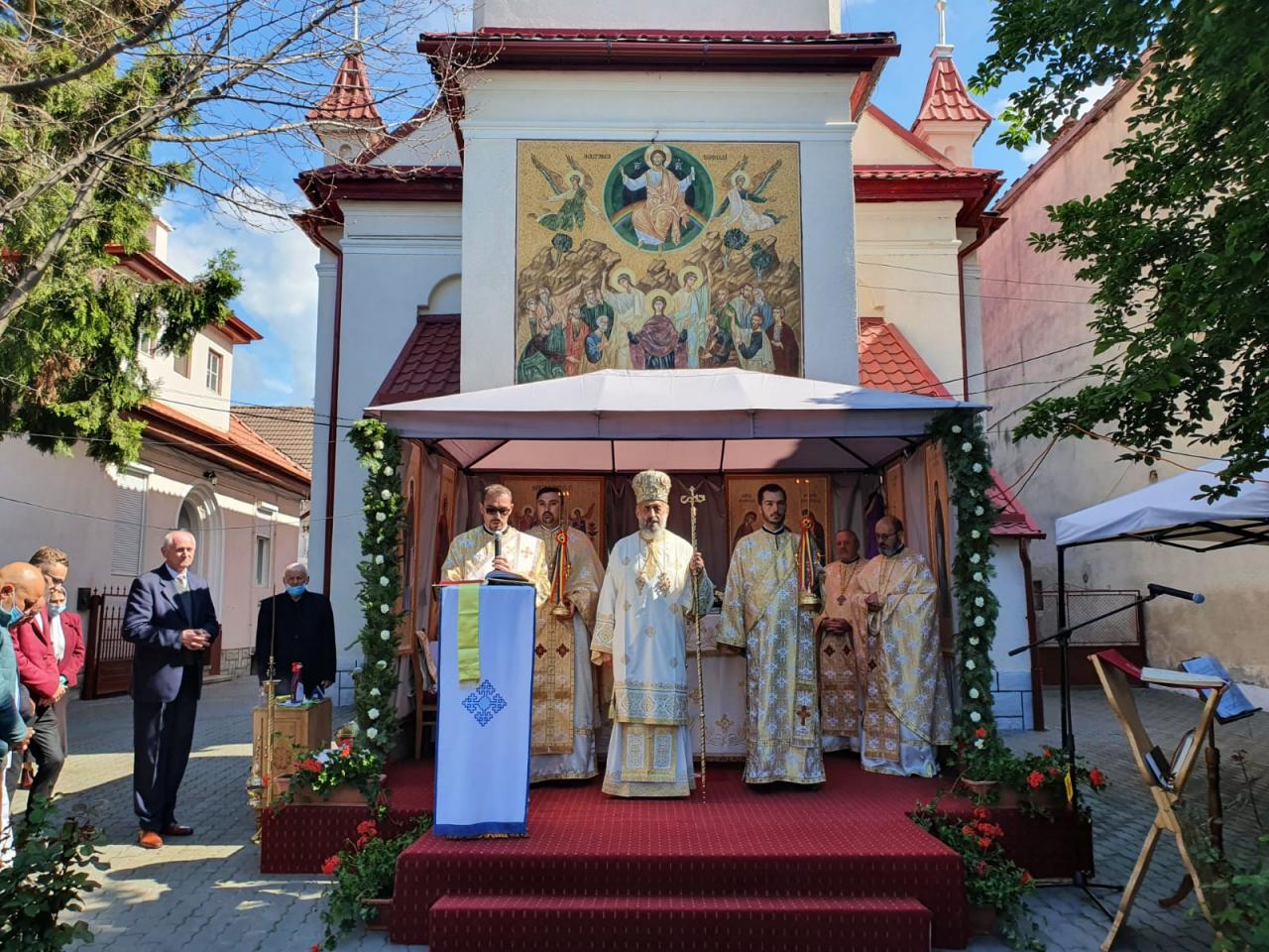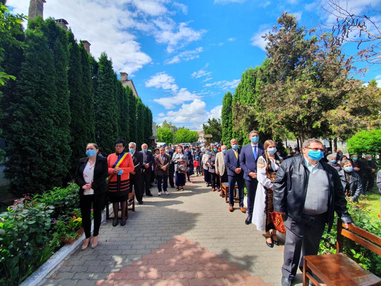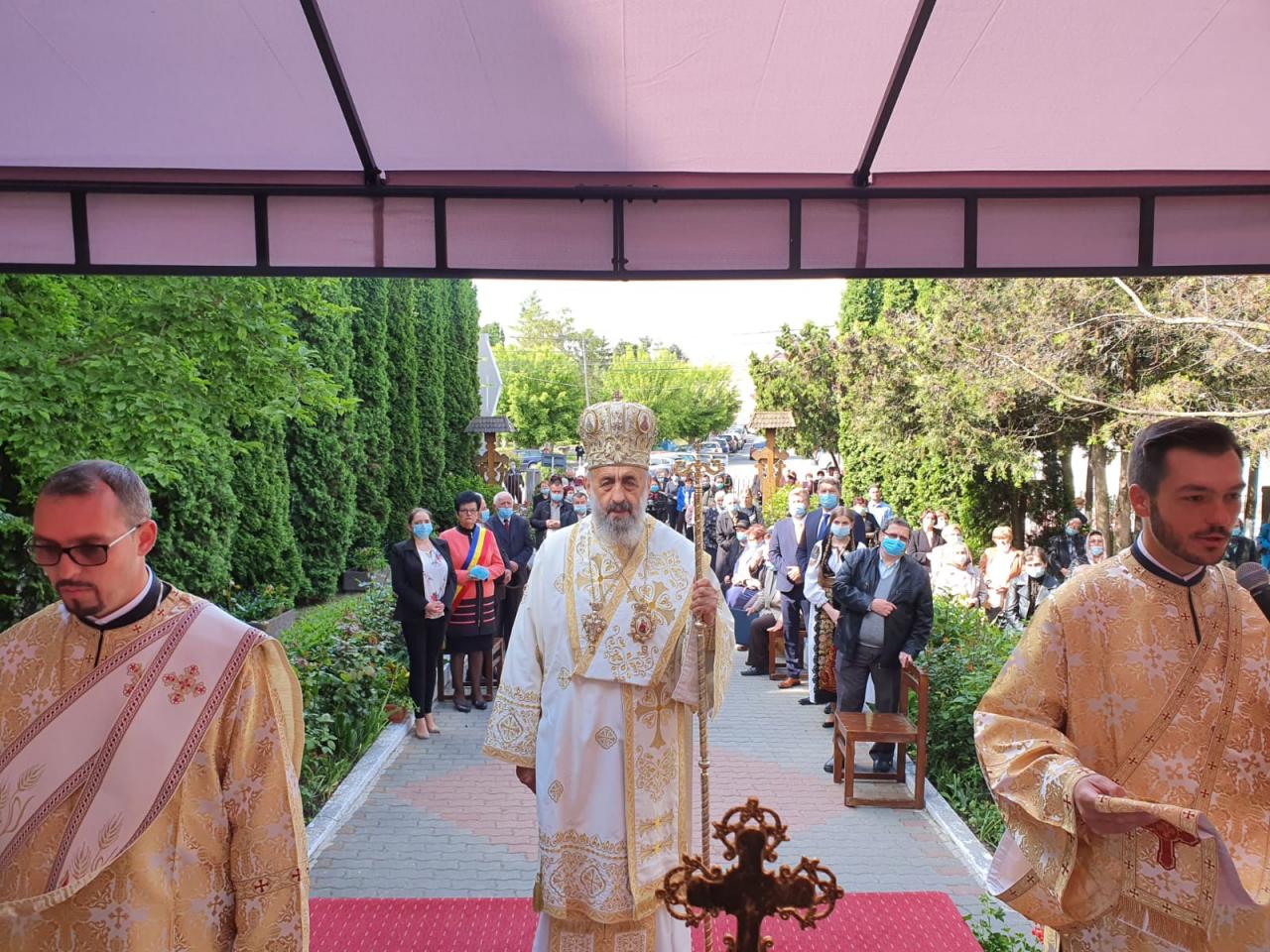 În contextul măsurilor luate pentru evitarea răspândirii noului coronavirus, Sfânta Liturghie a fost oficiată într-un sobor restrâns, pe un podium special amenajat în fața locașului de închinare. La final, Întâistătătorul Eparhiei noastre a oficiat slujba de pomenire a eroilor la monumentul situat în curtea bisericii parohiale. Comunitatea credincioșilor de aici este păstorită de către părintele protopop Valentin Vârva.