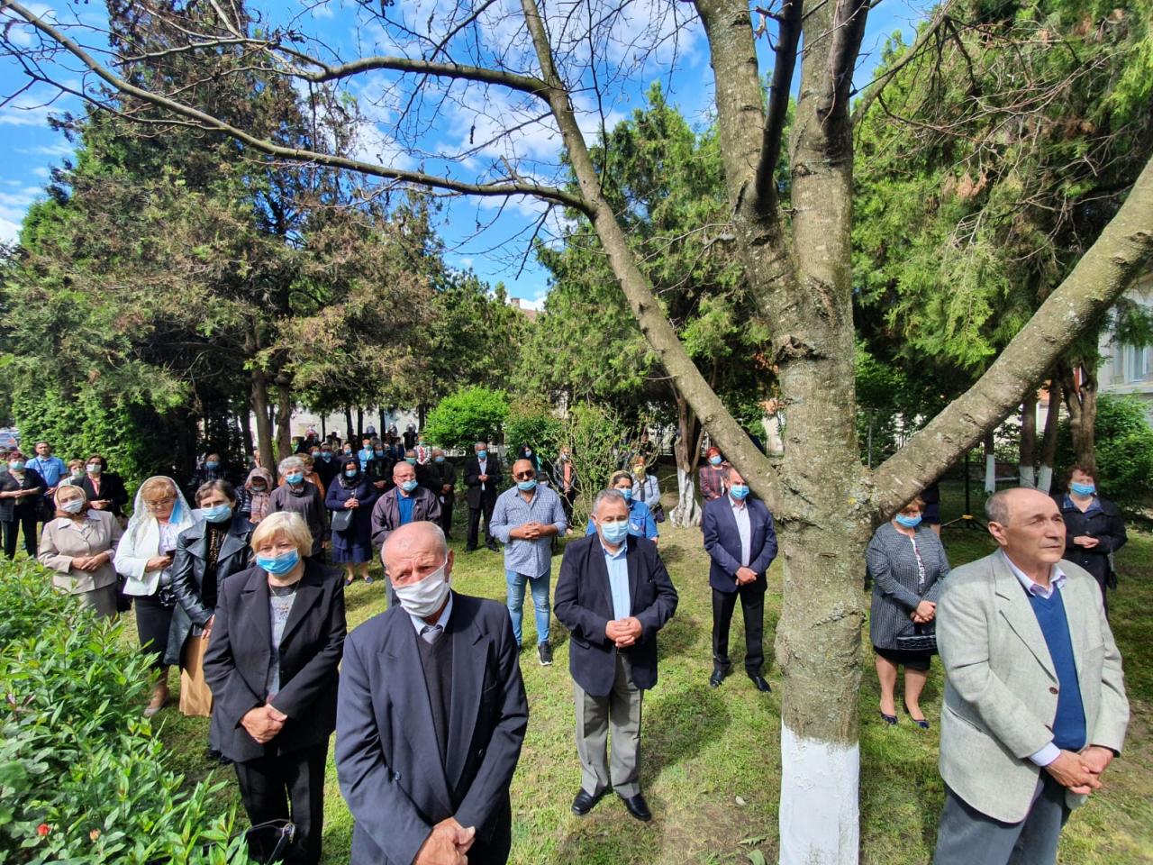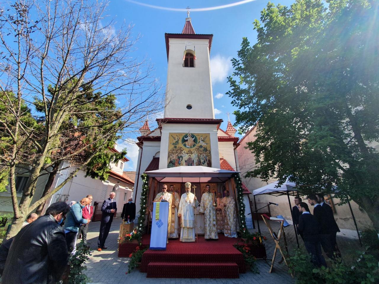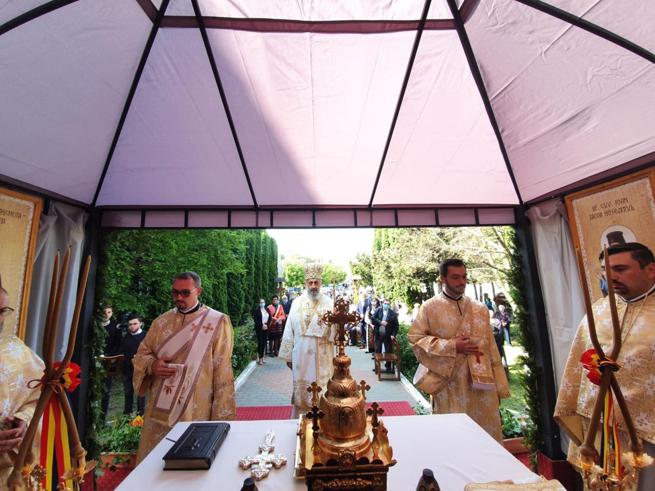 În contextul măsurilor luate pentru evitarea răspândirii noului coronavirus, Sfânta Liturghie a fost oficiată într-un sobor restrâns, pe un podium special amenajat în fața locașului de închinare. La final, Întâistătătorul Eparhiei noastre a oficiat slujba de pomenire a eroilor la monumentul situat în curtea bisericii parohiale. Comunitatea credincioșilor de aici este păstorită de către părintele protopop Valentin Vârva.