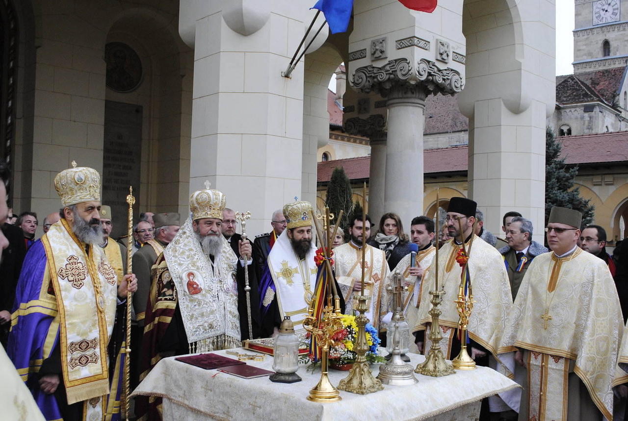 Mii de oameni au participat ieri, 1 decembrie 2014, la Alba Iulia, pentru a serba împlinirea a 96 de ani de la Unirea cea Mare – cheia de boltă a mărețului edificiu al unității naționale. Cu această ocazie, Înaltpreasfințitul Părinte Laurențiu, Mitropolitul Ardealului, Înaltpreasfințitul Părinte Irineu, Arhiepiscopul Alba Iuliei și Preasfințitul Părinte Siluan, Episcopul Eparhiei Ortodoxe Române din Ungaria, înconjurați de un sobor de preoți și diaconi, au săvârși Sfânta Liturghie, urmată de Slujba de Te Deum la sărbătoarea Zilei Naţionale a României.
