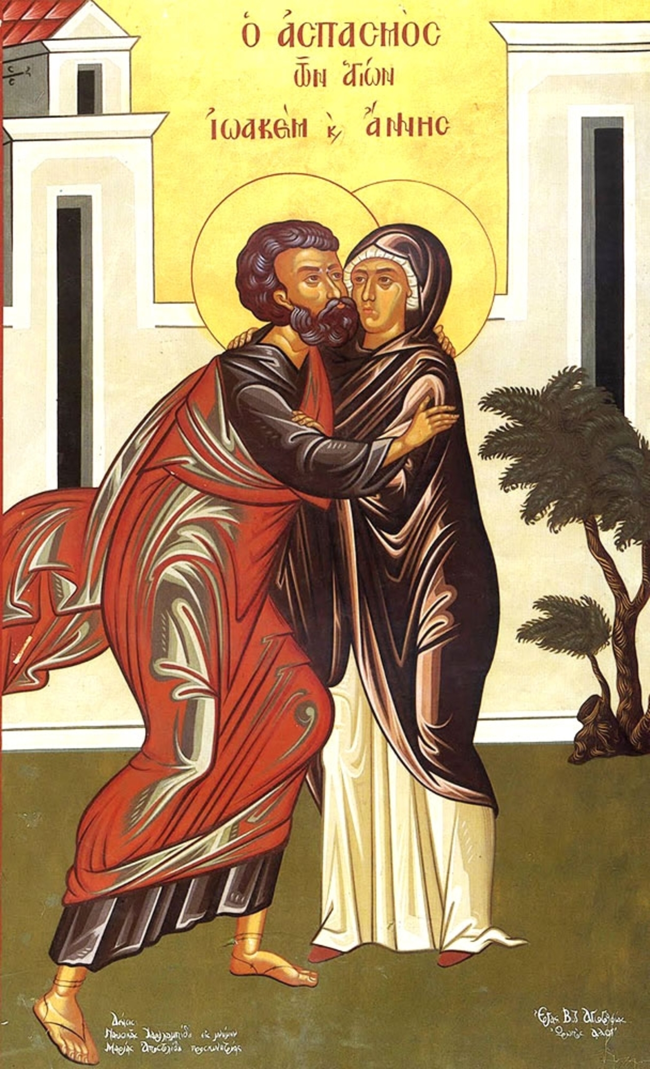 Ana tresări la auzul acestor cuvinte şi, îmbrăcându-se în haine de sărbătoare, a ieşit în grădină, unde, la umbra unui dafin, stătea şi se ruga lui Dumnezeu. Ascultându-i rugăciunile, Dumnezeu trimite pe îngerul Său care îi vesteşte Sfintei Ana că va avea un copil. Ioachim încă nu ştia nimic, deoarece se afla în mijlocul turmelor sale, unde, întristat fiind, se dusese pentru a fi singur. Aflând vestea bucuriei, s-a întors acasă cu nădejde în Dumnezeu. La vremea cuvenită s-a împlinit cuvântul îngerului, iar Ana cea stearpă a născut pe Sfânta Fecioară Maria.