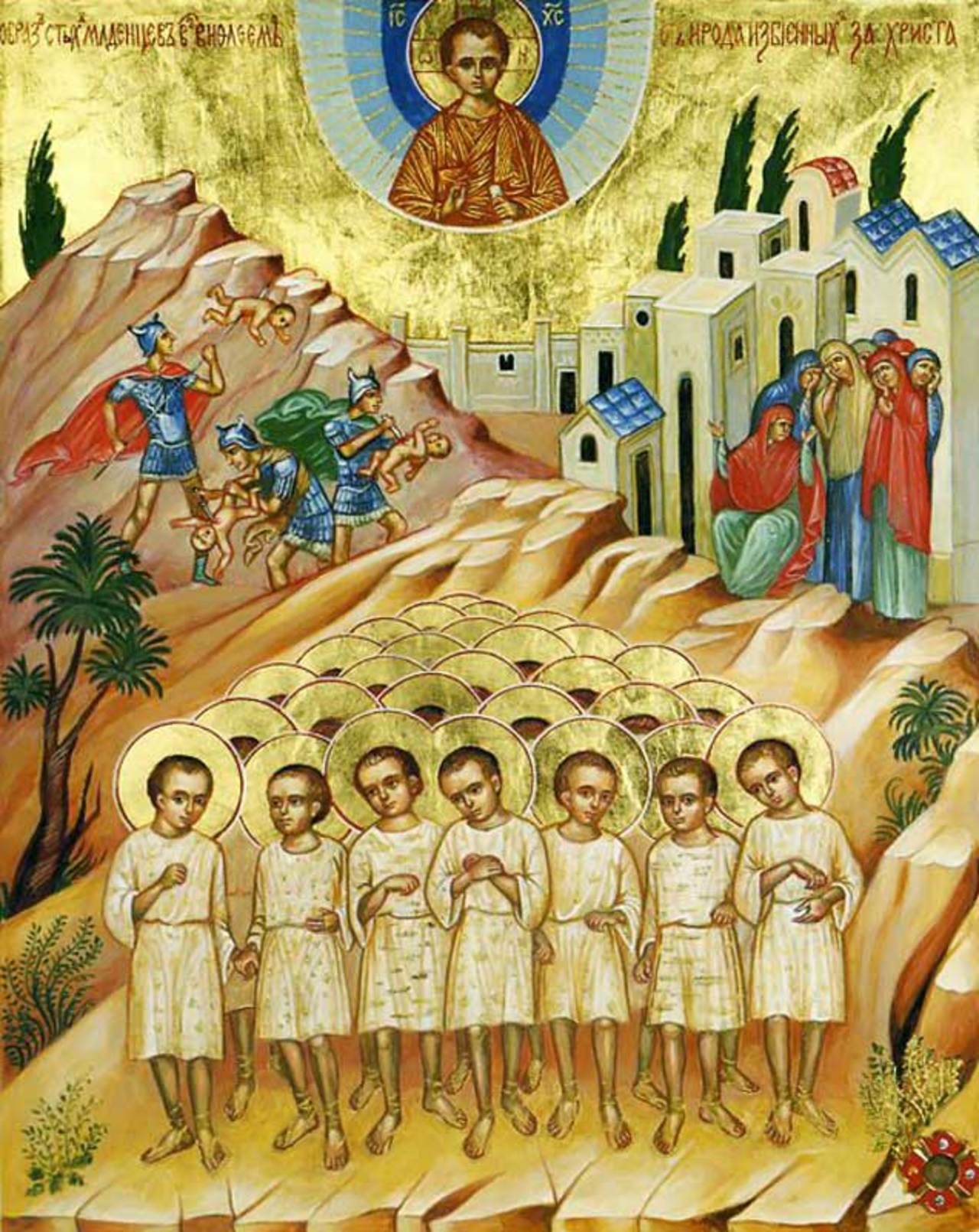 Văzând că a fost înşelat de magi, Irod s-a supărat şi a trimis ostaşi ca să omoare pe toţi pruncii din Betleem şi din împrejurimi, prunci până la vârsta de 2 ani, gândind că astfel va ucide pe Hristos Domnul. Că se gândea că de va ucide pe toţi pruncii, atunci va ucide negreşit şi pe Împăratul ce va să fie, şi nu va mai unelti împotriva tronului lui. Dar în zadar s-a ostenit, nebunul! Nu-şi dădea seama, că omul nu poate împiedica voia lui Dumnezeu. Şi aşa Irod a pricinuit pruncilor împărăţia cerurilor, iar lui şi-a pricinuit osânda veşnică.