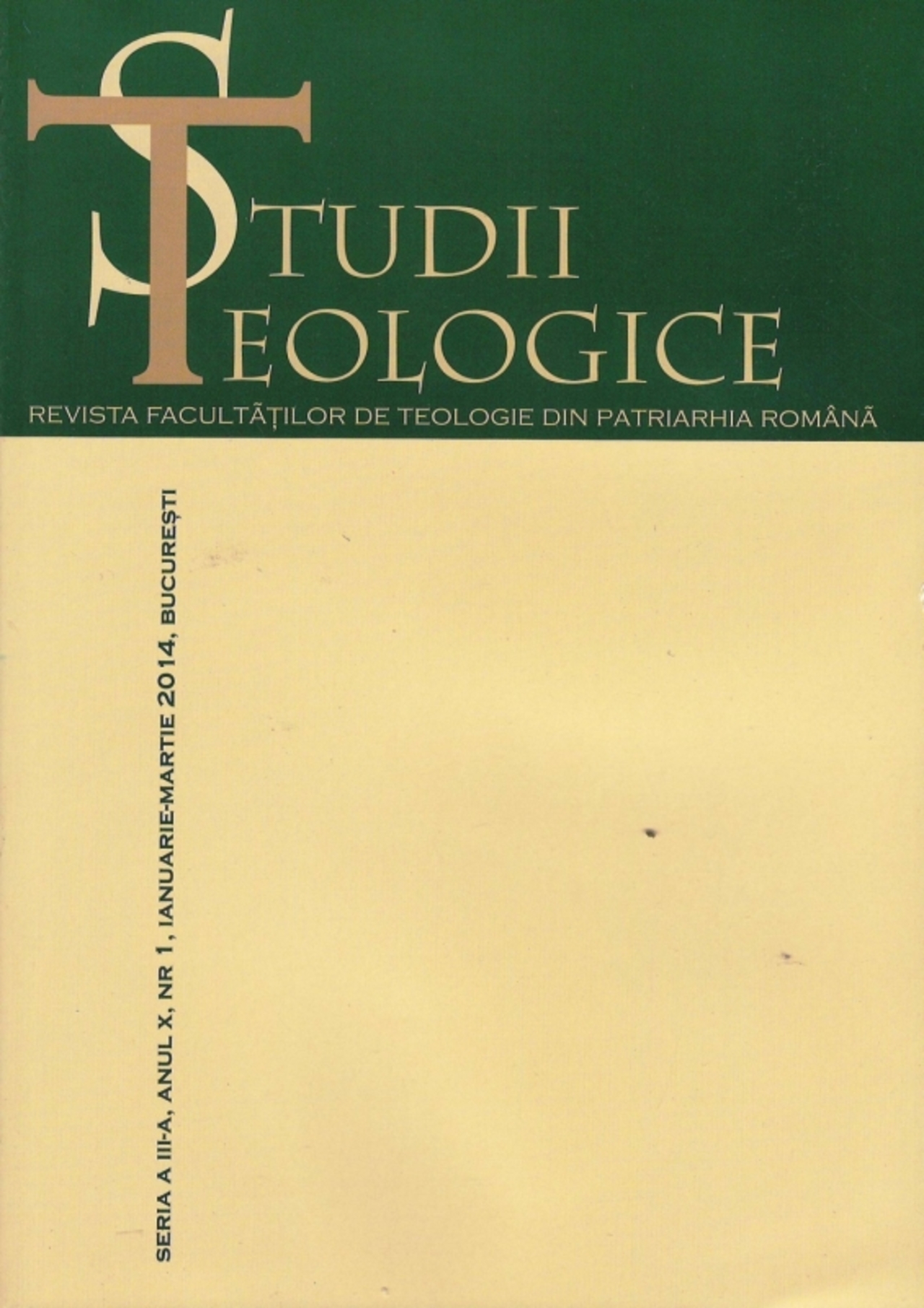 A apărut un nou număr al Revistei ”Studii teologice”, publicaţia facultăţilor de Teologie din Patriarhia Română. Acesta este prima apariţie pe anul acesta. În numărul curent puteţi citi studii despre elementele de retorică din operele Sfinţilor Capadocieni, despre autonomia religiilor, despre dialogul dintre Biserică şi modernitate. Tot în acest număr sunt publicate şi recenzii ale unor noi lucrări de Teologie apărute recent în lume.