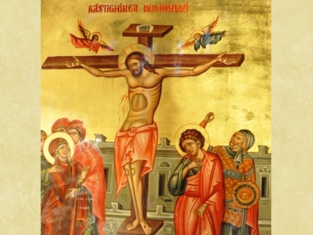 "După ce Domnul a fost vândut de prietenul și ucenicul Lui cu treizeci de arginți, a fost dus mai întâi la Ana arhiereul. Acesta L-a trimis la Caiafa, care L-a scuipat și L-a lovit peste față; și pe când își bătea joc și râdea de El, a auzit spunându-I-se: "Profețește-ne, cine Te-a lovit ". Acolo au venit și doi martori mincinoși care au mărturisit că Hristos a spus: "Stricați Templul acesta și în trei zile îl voi ridica", și că a spus că este Fiul lui Dumnezeu. Arhiereul și-a rupt hainele neputând suferi așa-numita de el hulă. Când s-a făcut ziuă L-au dus în pretoriu la Pilat, "și ei n-au intrat, spune Scriptura, ca să nu se spurce, ci să poată mânca Paștile". Pilat a ieșit afară și i-a întrebat: "Care este vina Lui?" Și pentru că n-a găsit nici o vină în El, L-a trimis la Caiafa; iar acesta L-a trimis din nou la Pilat, căci și Pilat se pornise spre uciderea Lui. Pilat a spus: "Luați-L voi și răstigniți-L și după legea voastră judecați-L". Ei au spus iarăși: "Nouă nu ne este îngăduit să omorâm pe nimeni". Prin aceste cuvinte au ațâțat pe Pilat ca să-L răstignească. Pilat L-a întrebat pe Hristos dacă este Împăratul iudeilor. El a mărturisit că este, dar este Împărat veșnic: "Împărăția Mea, a spus El, nu este din lumea aceasta". Pilat, voind să-L elibereze le-a spus mai întâi că nu găsește nici o vină deosebită în El, apoi le-a propus să elibereze pe unul din cei închiși. Iudeilor însă le-a fost mai drag Varava decât Iisus. În sfârșit Pilat L-a dat iudeilor după ce mai întâi L-a biciuit pe Iisus. Este apoi dus de soldați, îmbrăcat cu o hlamidă roșie, încununat cu o cunună de spini și în mâini I-au pus trestie. A fost batjocorit de soldații care-I spuneau: "Bucură-Te împăratul iudeilor". După ce L-au batjocorit așa, Pilat a spus din nou: "Nu găsesc în El nici o vină de moarte". Ei însă au spus: "Noi Îl osândim pentru că S-a numit pe Sine Fiul lui Dumnezeu". Pe când spuneau acestea, Iisus tăcea. Mulțimea a strigat lui Pilat: "Răstignește-L, răstignește-L". Ei voiau să-L dea unei morți necinstite, ca să îndepărteze din mijlocul lor amintirea Lui cea bună. Pilat își bătea joc oarecum de ei zicându-le: "Pe împăratul vostru să-L răstignesc?". Ei au răspuns: "N-avem alt împărat decât pe Cezarul". Iudeii, pentru că n-au reușit nimic cu hulele lor, aduc în discuție pe Cezarul, ca cel puțin așa să-și sature furia lor. Într-adevăr au spus: "Tot cel care se face pe sine împărat se împotrivește Cezarului". În timpul acesta femeia lui Pilat, înfricoșată de visuri, a trimis la Pilat să-i spună: "Să nu faci nimic dreptului acestuia". Căci ea, din pricina lui Iisus, suferise mult în timpul nopții. Pilat s-a spălat pe mâini, lepădându-se prin asta de vina sângelui. Iudeii însă au strigat: "Sângele Lui peste noi și peste copiii noștri! Dar dacă-L eliberezipe El nu ești prieten al Cezarului!". Așadar Pilat L-a legat, deși știa bine că este nevinovat, L-a osândit la moarte pe cruce, și le-a slobozit pe Baraba. Când a văzut Iuda aceasta, aruncând arginții a plecat și ducându-se a luat o frânghie și s-a spânzurat; pe urmă s-a umflat mult și a crăpat. Ostașii L-au bătut peste față cu trestia și I-au pus în spate Crucea. Apoi au silit pe Simon Cirineanul să-I ducă crucea. Au ajuns pe la ceasul al treilea la locul Căpățânei și acolo L-au răstignit. A fost răstignit împreună cu doi tâlhari ca să fie și El socotit un făcător de rele. Pentru a-L înjosi, soldații au împărțit hainele Lui, iar pentru cămașa Sa, care era făcută dintr-o bucată și nu avea nici o cusătură, au aruncat sorți, săvârșind cea mai mare nelegiuire. Dar nu numai acestea, ci și pe când era pe Cruce își băteau joc de El, zicând: "Tu, Cel ce strici Templul și în trei zile îl zidești, mântuiește-te pe Tine!". Și iarăși: "Pe alții a mântuit, dar pe Sine nu poate să se mântuiască". Și iarăși: "Dacă ești împăratul lui Israel, coboară-Te acum de pe Cruce și vom crede în Tine!". Iudeii, dacă ar fi crezut în cele ce spuneau, ar fi trebuit să se apropie de El fără nici o îndoială, căci într-adevăr Hristos era recunoscut de întreaga fire nu numai ca împărat al lui Israel, ci și al întregii lumi. Ce însemna, oare, întunecarea soarelui în ceasul al treilea și în miezul zilei? Ce însemna cutremurarea pământului? Ce însemna despicarea pietrelor, care au mustrat învârtoșarea inimii iudeilor? Ce însemna învierea multor trupuri, care ne-a învederat credința în învierea obștească și puterea Celui ce-a pătimit? Ce însemna sfâșierea în două a catapetesmei Templului, ca și cum și ea ar fi fost supărată din pricina Celui care a fost slăvit în ea și pătimește acum? Ce însemnau apoi celelalte lucruri descoperite, dar care n-au putut fi văzute? Așadar în ceasul al treilea, după cum spune dumnezeiescul Marcu, a fost răstignit. Din ceasul al șaselea până în ceasul al nouălea s-a făcut întuneric. Longhin sutașul, când a văzut aceste lucruri minunate și mai cu seamă întunecarea soarelui, a strigat cu voce mare: "Cu adevărat Fiul lui Dumnezeu a fost acesta". Unul dintre tâlhari Îl insulta pe Iisus; celălalt însă, mustrându-l cu asprime pe acesta, a mărturisit pe Hristos ca Fiu al lui Dumnezeu. Mântuitorul i-a răsplătit credința lui și i-a făgăduit petrecerea în rai împreună cu El. În sfârșit, după ce a fost insultat din destul, Pilat a scris pe Cruce și cuvintele: "Împăratul iudeilor". Deși iudeii s-au împotrivit să scrie așa, zicând că El S-a numit împărat al iudeilor, totuși Pilat a spus împotriva lor din nou: "Ce-am scris, am scris!". Apoi Mântuitorul a strigat: "Mi-e sete!". Ei au amestecat oțet cu fiere și I l-au dat să bea. Și spunând: "Săvârșitu-s-a!". Înclinând capul Și-a dat duhu
