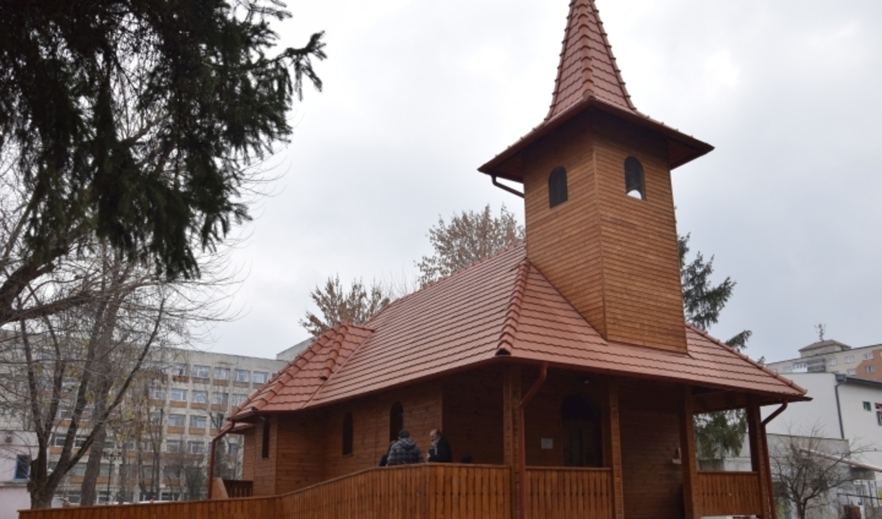 "Biserica a fost ridicată între anii 2013-2014 sub îndrumarea directă a Înaltpreasfințitului Părinte Irineu Arhiepiscop al Alba Iuliei, la inițiativa asociației spitalului condusă de doamna director Coșarcă Nicoleta și de doamna Onețiu Monica şi prin contribuția domnului Oancea Mihai din Alba Iulia.