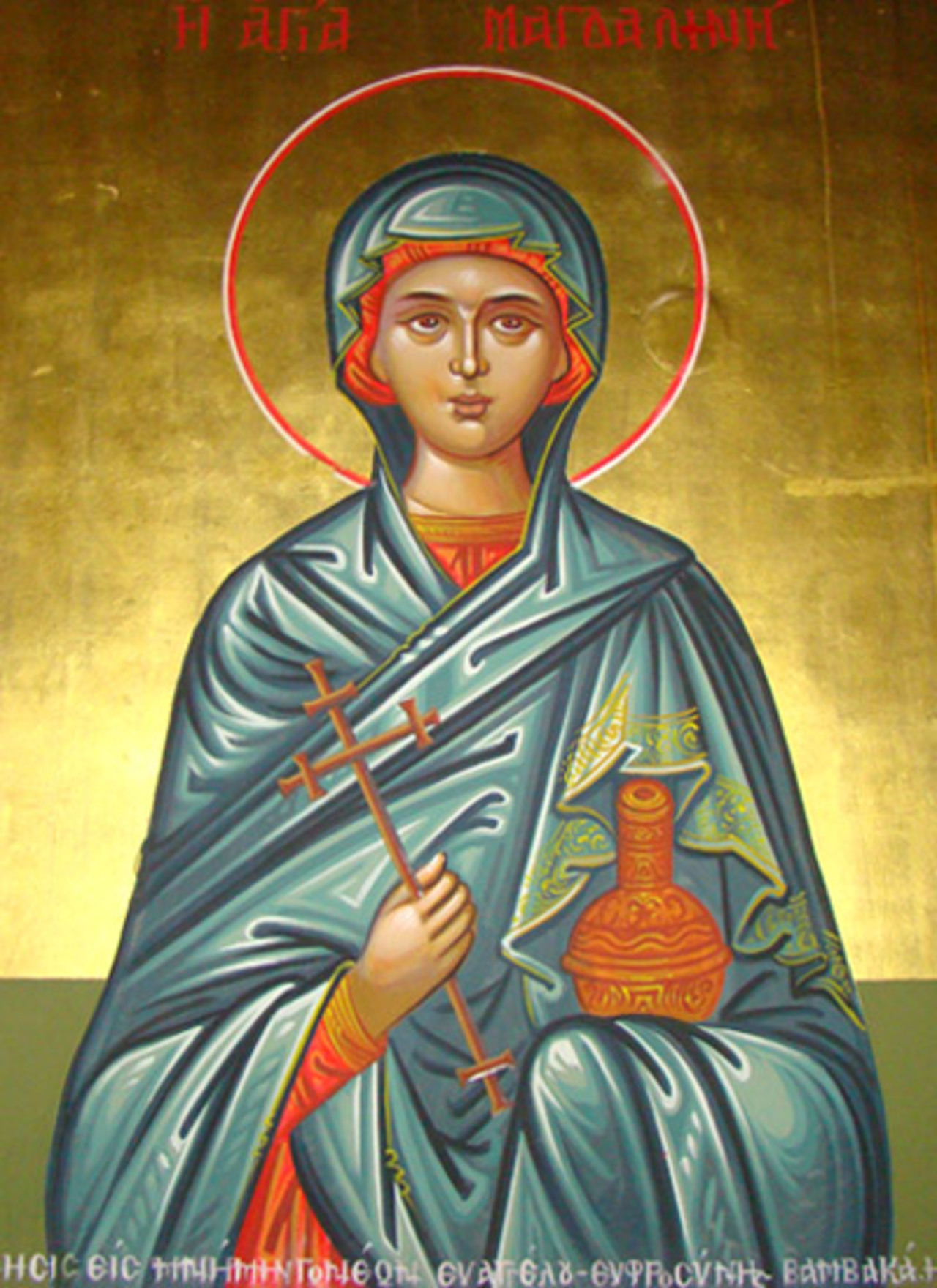 Biserica Ortodoxă prăznuieşte astăzi, 22 iulie, pe Sfânta Maria Magdalena, mironosiţă din seminţia lui Neftalim. S-a numit Magdalena după localitatea Magdala, din Galileea de Sus, unde s-a născut sau a trăit mai mult, oraş aşezat cam la 5 km spre nord de Marea Galileii. Este femeia din care Mântuitorul Iisus Hristos a scos şapte demoni (Luca VIII, 2) şi care împreună cu altele I-au urmat şi I-au slujit apoi (Luca VIII, 2-3). Ea face parte apoi din grupul mironosiţelor care au stat lângă crucea Lui (Ioan XIX, 25) şi au mers dis-de-dimineaţă la mormântul lui Iisus să ungă Trupul Lui cu miresme (Marcu XVI, 1-2). Şi tot ea este aceea căreia i S-a arătat Iisus întâi după Înviere (Marcu XVI, 9; Ioan XX, 11) şi a fost cea dintâi vestitoare a Învierii Lui (Marcu XVI, 10; Ioan XX, 18).