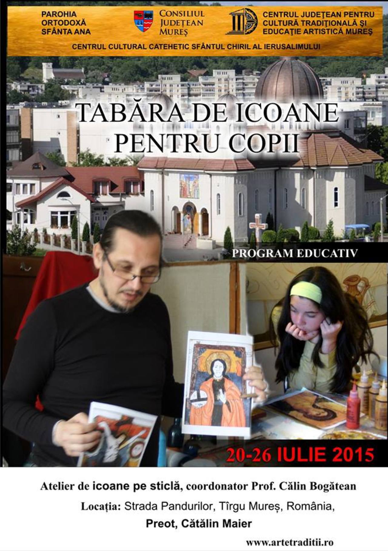 Parohia „Sfânta Ana“ din Târgu Mureş, în parteneriat cu Centrul Judeţean pentru Cultură Tradiţională şi Educaţie Artistică Mureş (CJCTEA) şi Centrul cultural catehetic „Sfântul Chiril al Ierusalimului“, desfăşoară în prezent o tabără de icoane pentru copii.