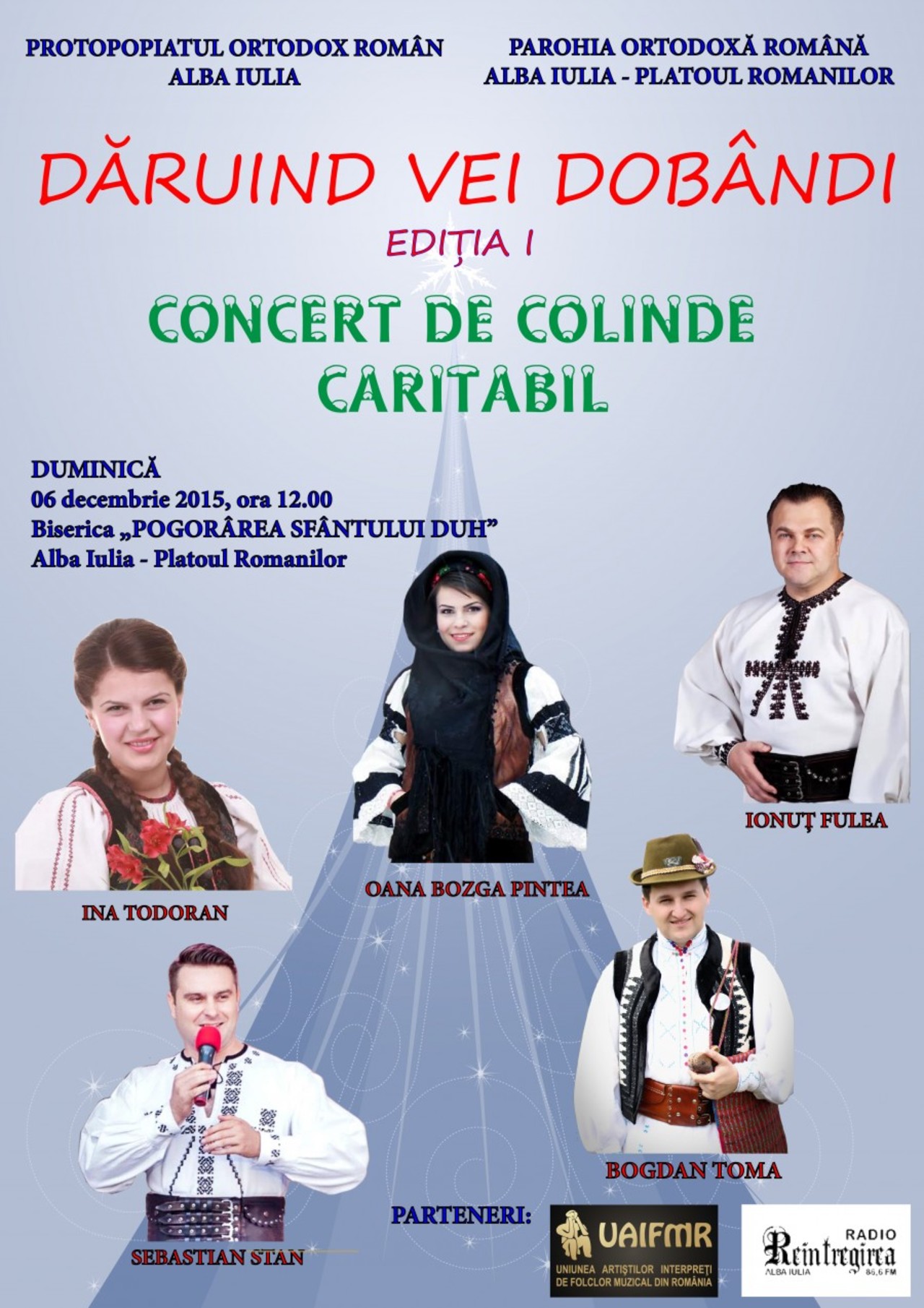Cu binecuvântarea Înaltpreasfinţitului Părinte Arhiepiscop Irineu, Protopopiatul Ortodox Alba Iulia şi Parohia Platoul Romanilor Alba Iulia, organizează prima ediţie a evenimentului caritabil cu genericul „Dăruind vei dobândi” şi are ca scop sensibilizarea publicului în vederea sprijinirii aşezămintelor sociale din Protopopiatul Ortodox Alba Iulia.