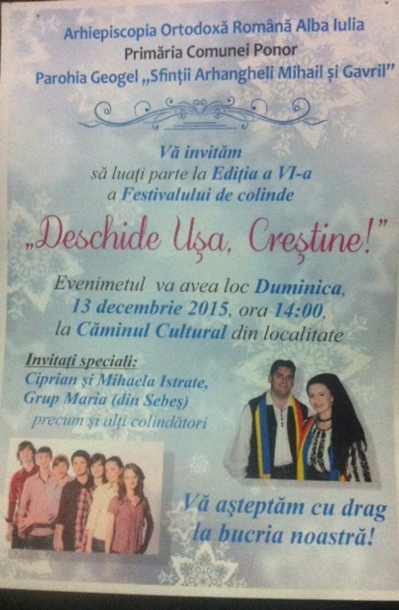 Căminul cultural din Geogel găzduieşte duminică a 6-a ediţie a Festivalului de Colinde „Deschide uşa, creştine!”.