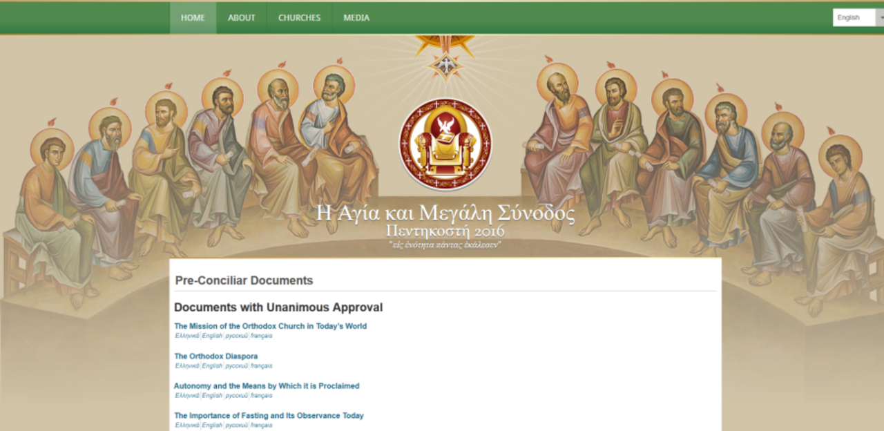 Pe data de 24 mai 2016, a fost lansată pagina oficială de internet a Sfântului şi Marelui Sinod al Bisericii Ortodoxe (holycouncil.org [https://www.holycouncil.org/] ).