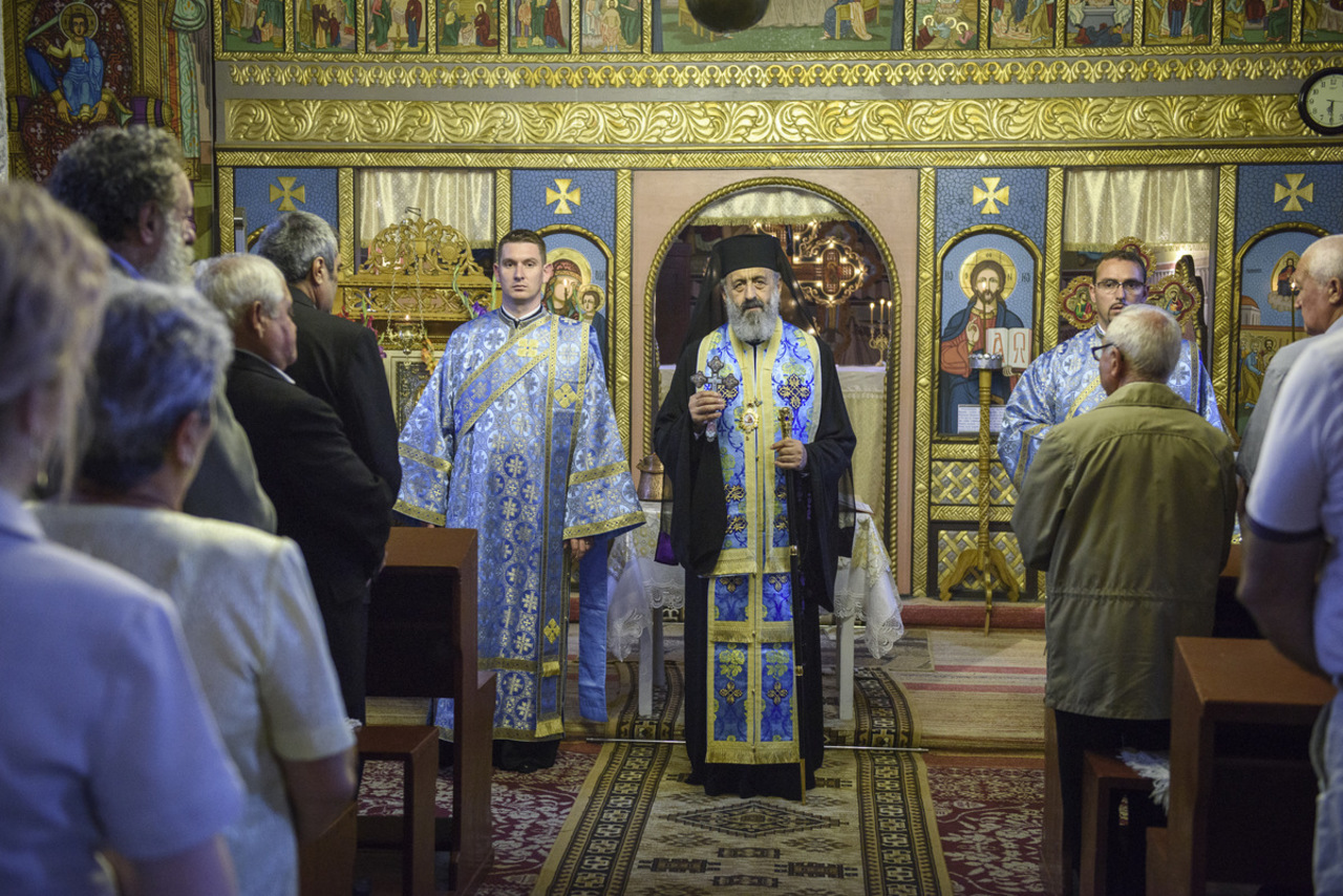 Ierarhul nostru a săvârşit slujba Paraclisului Maicii Domnului, apoi a binecuvântat noile cruci care vor fi puse pe acoperişul locaşului de închinare, după care a adresat celor prezenţi un cuvânt de învăţătură. Această comunitate este păstorită de către părintele Constantin Purcaru.