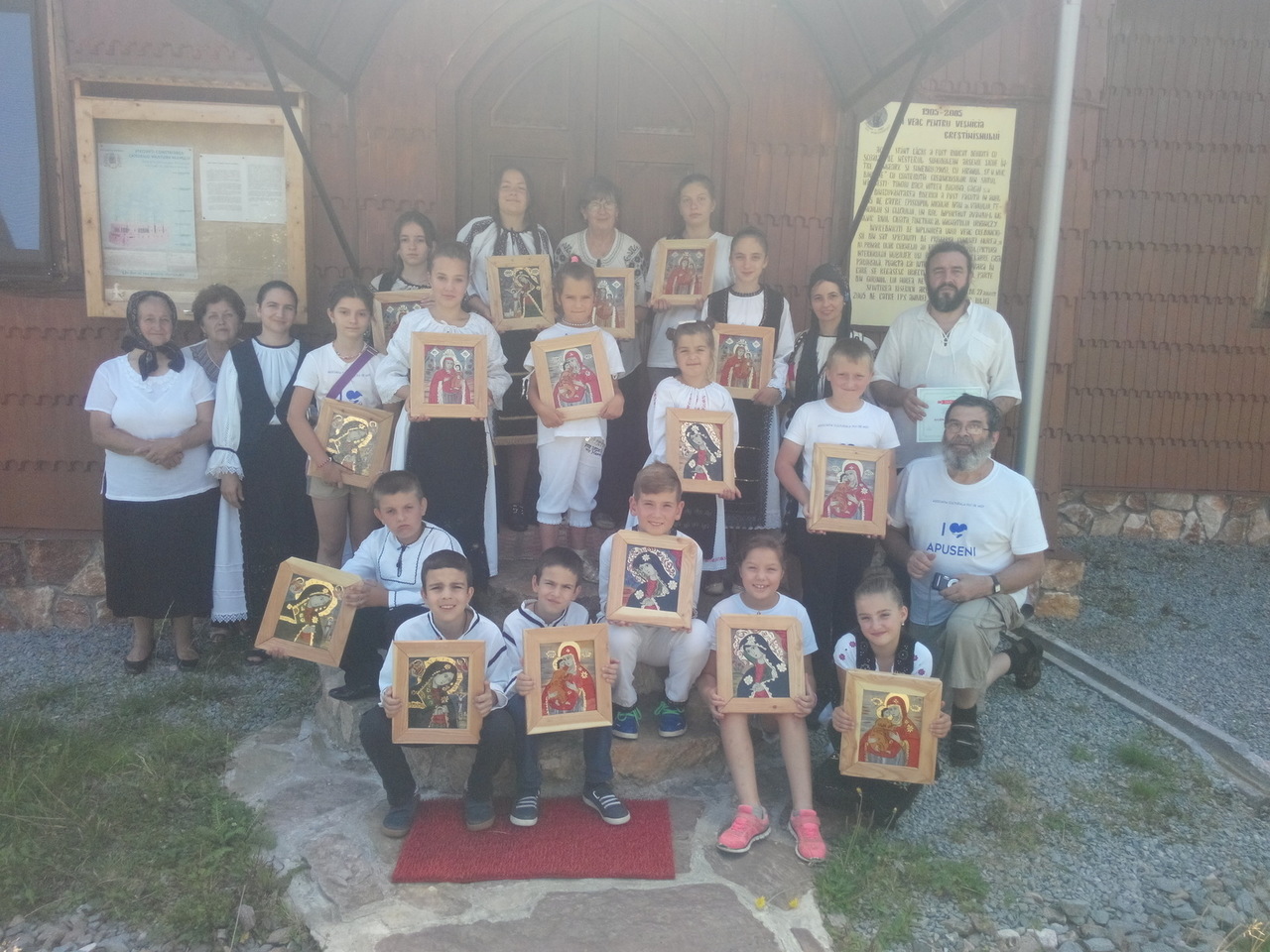 La atelierul de icoane pe sticlă copiii au făcut cunoştinţă cu pensule si culori sub ȋndrumarea doamnei Magdalena Palada-Nicolau, meşter popular iconar. Rodul muncii copiilor a fost remarcabil, răbdarea admirabilă, fiecare elev realizând o icoană a Maicii Domnului. Icoanele au fost sfinţite ȋntr-o atmosferă tainică de către părintele paroh Ilie Grecu.