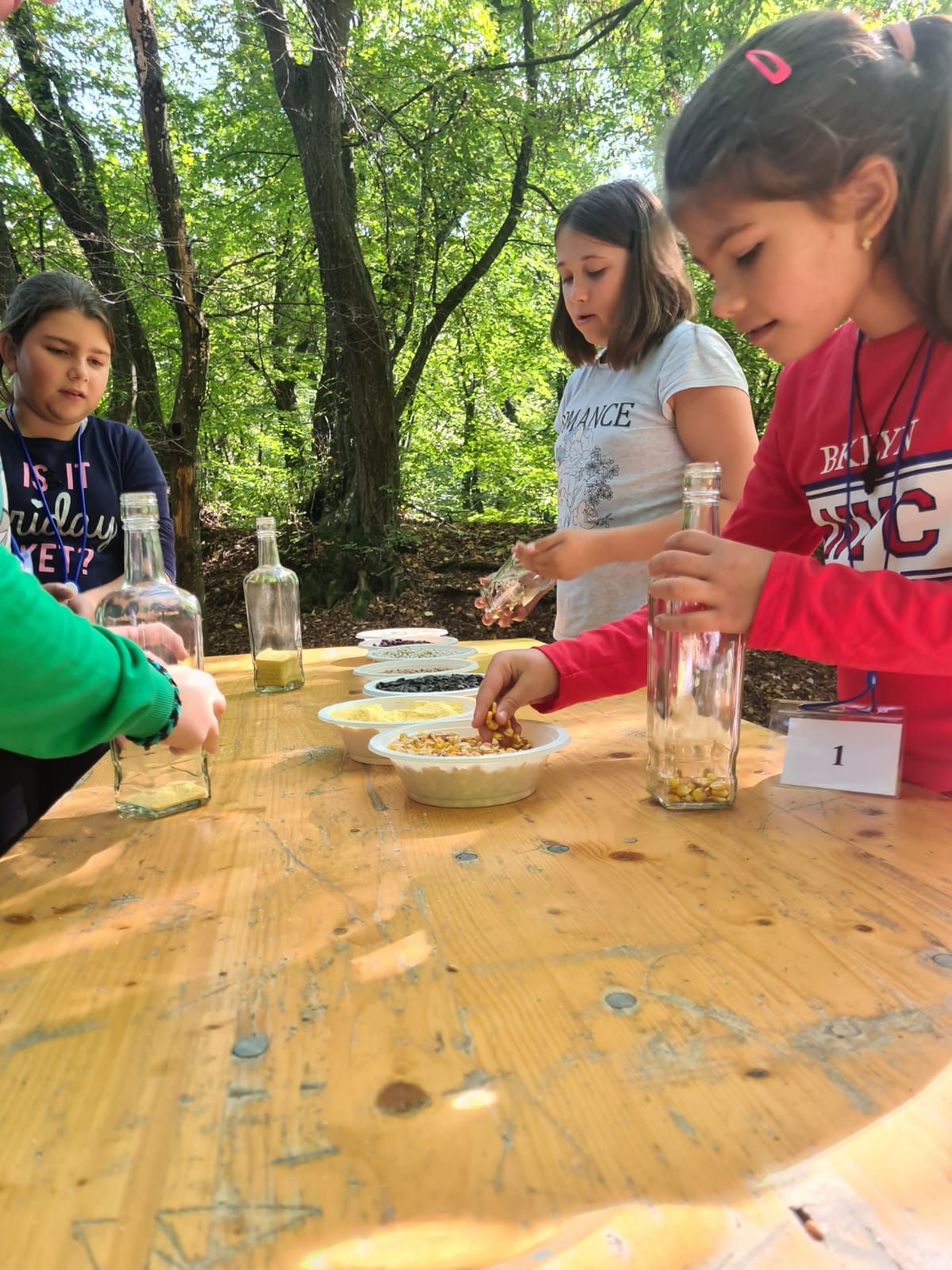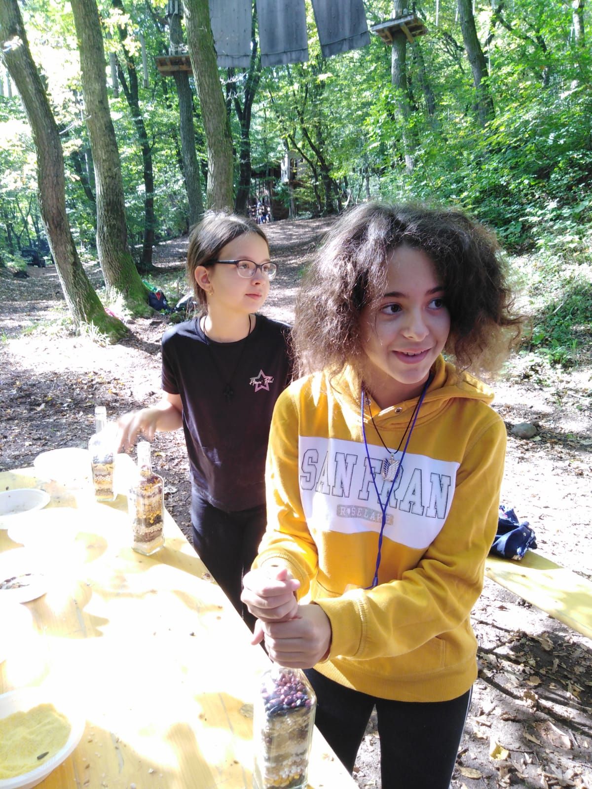 Programul a continuat cu o serie de jocuri și activități coordonate de socio-animatorii voluntari ai Arhiepiscopiei noastre, prin care s-a urmărit nu doar crearea bunei dispoziții, ci și sporirea unor calități absolut necesare, precum: încrederea în sine, colaborarea în echipă, intuiția și capacitatea de rezolvare a problemelor. După masa de prânz, au fost puse în valoare creativitatea și gustul pentru frumos în cadrul unui atelier de confecționare a sticlelor ornamentale, pe care le-au umplut cu cereale și semințe. Acestea au fost duse acasă de către participanți, devenind un suvenir care sperăm să le aducă aminte cu plăcere de această tabără. Spre finalul zilei, copiii au parcurs traseele din parcul de aventură, dezvoltându-și rezistența la efort fizic și abilitatea de a trece peste obstacole.