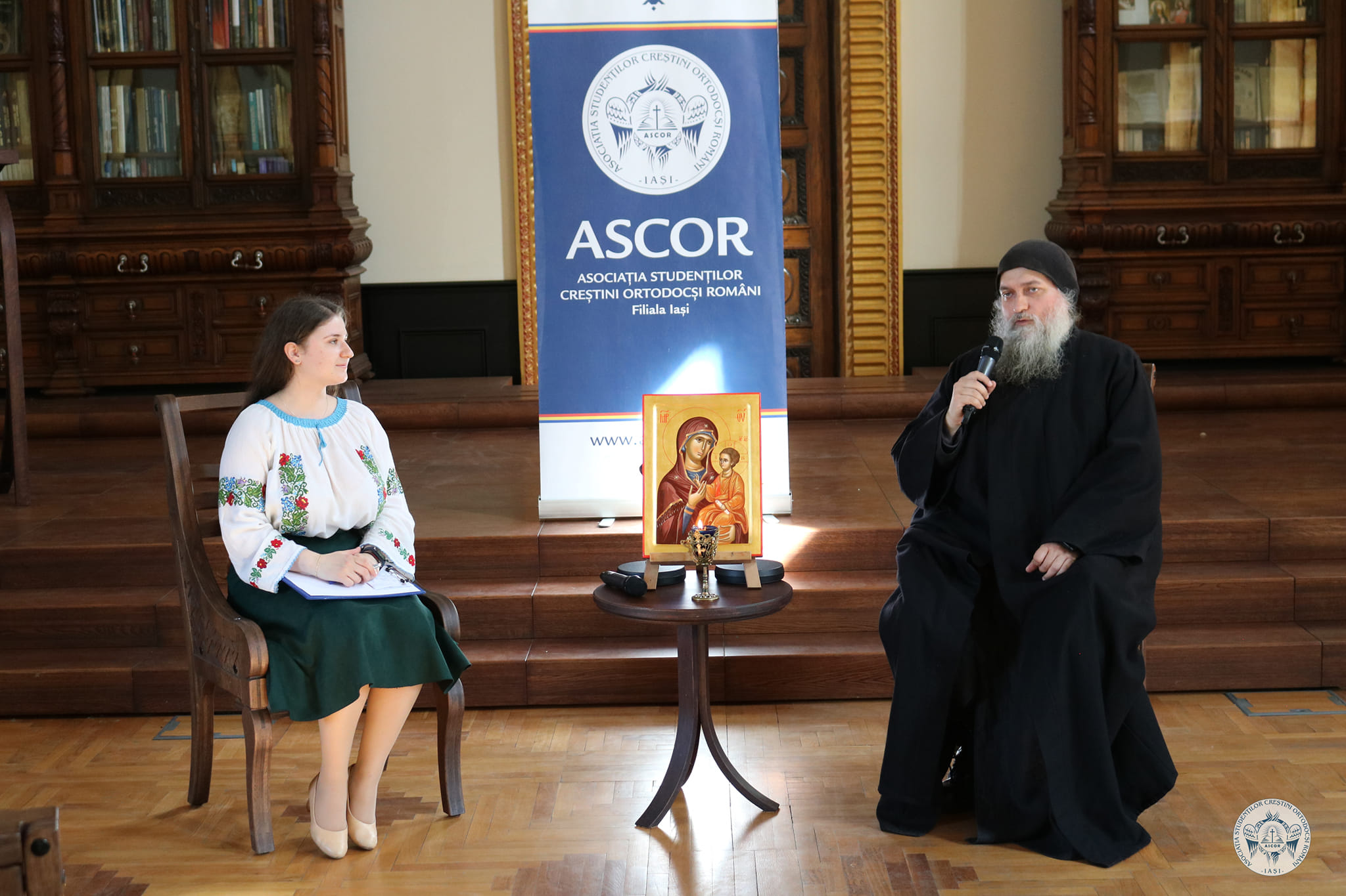 În continuare, studenții s-au deplasat către sala „Iustin Moisescu” din cadrul ansamblului mitropolitan, unde voluntarii ASCOR au organizat conferința cu tema „Rugăciunea – drum către tine(ri)”, susținută de părintele Serapion Pantea de la mănăstirea Partoș (jud. Timiș).