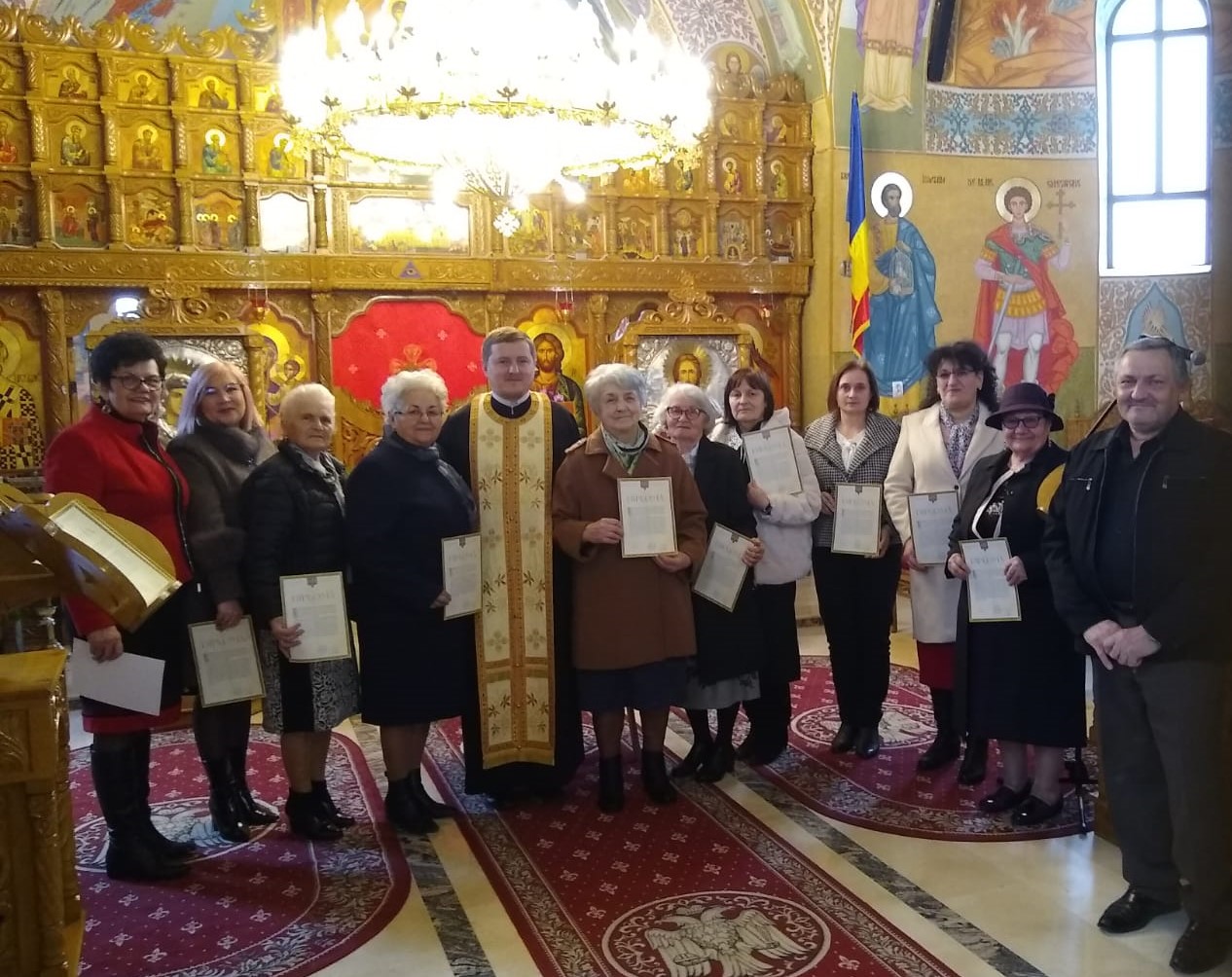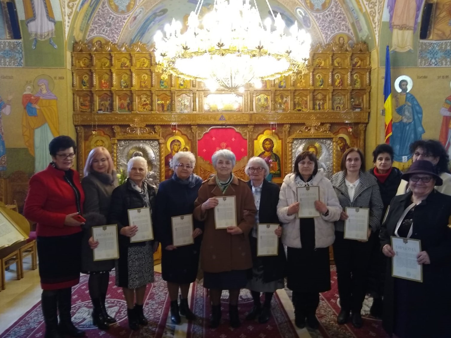 Bucuria clipelor festive a debutat cu slujba de Te Deum, oficiată de către subsemnatul, preot coordonator al organizației, precum și o slujbă de pomenire a membrelor asociației trecute în veșnicie. Prin grija părintelui protopop Valentin Vârva, președinta asociației a înmânat din partea protopopiatului Reghin o diplomă de recunoștință fiecărei membre și voluntare, pentru implicarea în diversele activități și pentru rezultatele pastoral-misionare deosebite ale acestora.