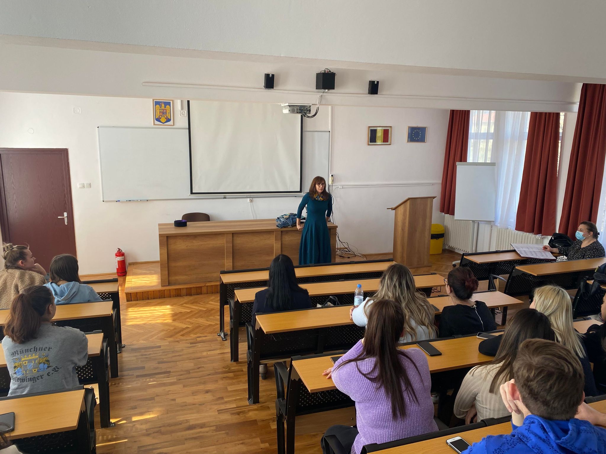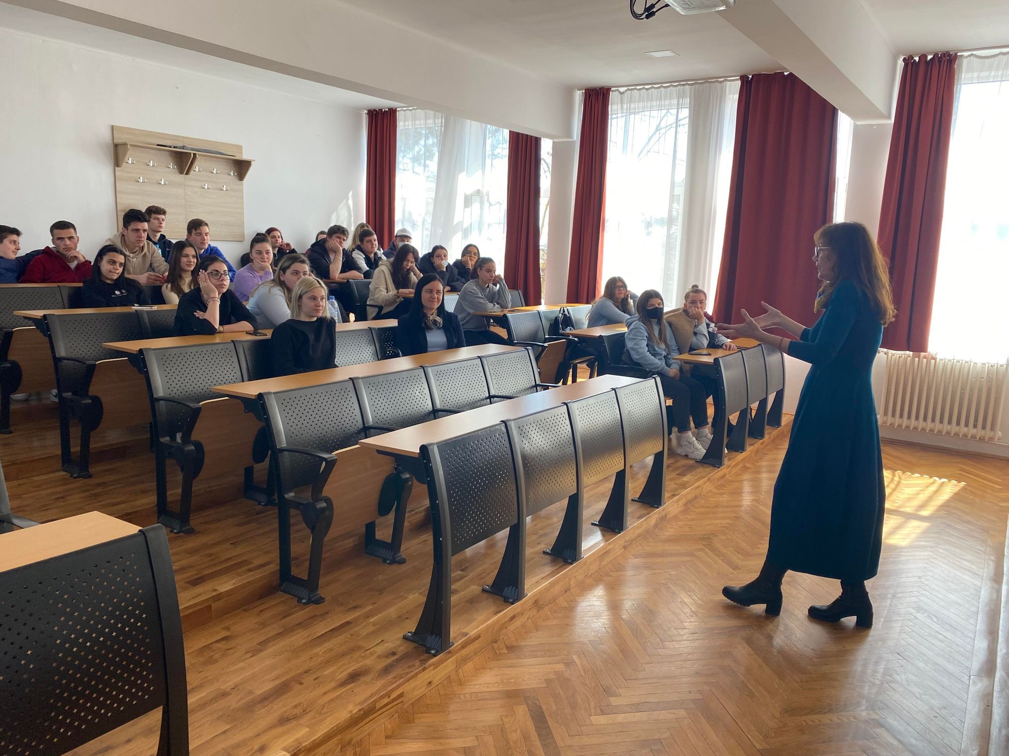 În continuare, liceeni de la Colegiul Național Pedagogic „Mihai Eminescu” din Târgu-Mureș au primit vizita de poveste a invitatei noastre. În cadrul întâlnirii intitulate „Despre așteptări, alegeri și ce faci atunci când toate corăbiile ți se scufundă”, auditoriul a aflat propria experiență de viață a autoarei, lungul și neașteptatul traseu la capătul căruia aceasta a ajuns scriitor și ilustrator de cărți pentru copiii, despre întâlniri cu ambasadori și viitori șefi de stat și apoi trecerea la întâlniri cu femei de serviciu cărora le arăți cât de bine spală toaleta detergentul pe care îl vinzi, „despre alegerile pe care le-am făcut, despre corăbii scufundate și despre întâlnirea mea cu Sorin Constantin, un tânăr cu boala oaselor de sticlă, cel mai minunat om pe care l-am întâlnit vreodată, cel mai bun și cel mai fericit, deși nu se ridicase niciodată din pat”.